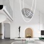 客厅使用纵轴设计,弧型沙发及组合茶几,搭配两侧单椅的围合手法,拉伸整个客厅的体量感,强化入户的第一感官,令其更显开阔。