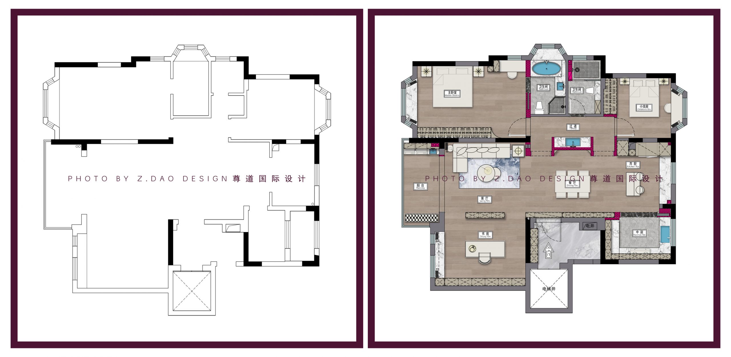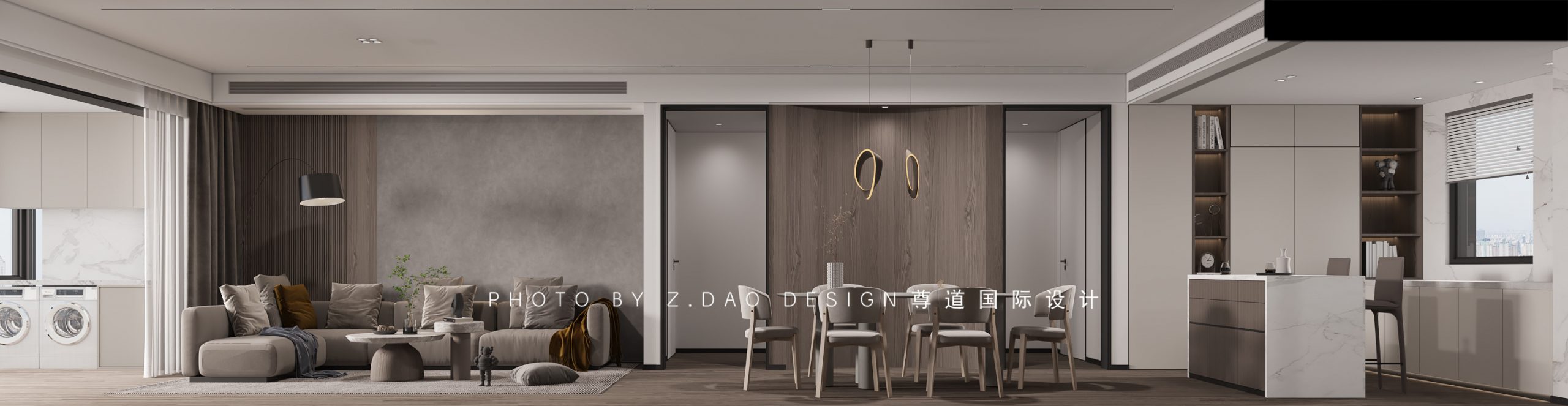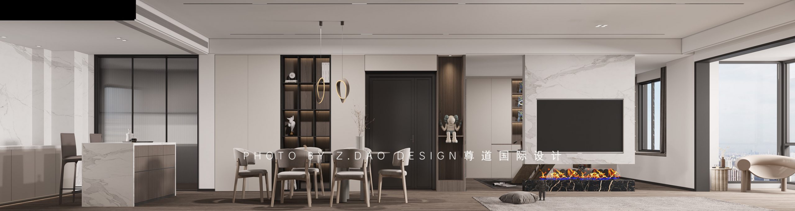 1、通过部分墙体重新拆除规划,创造出过道及餐厅洄游动线,餐厅端景建墙做弧形,背面即是墙体砌筑的内嵌1.8米的超大浴室柜。