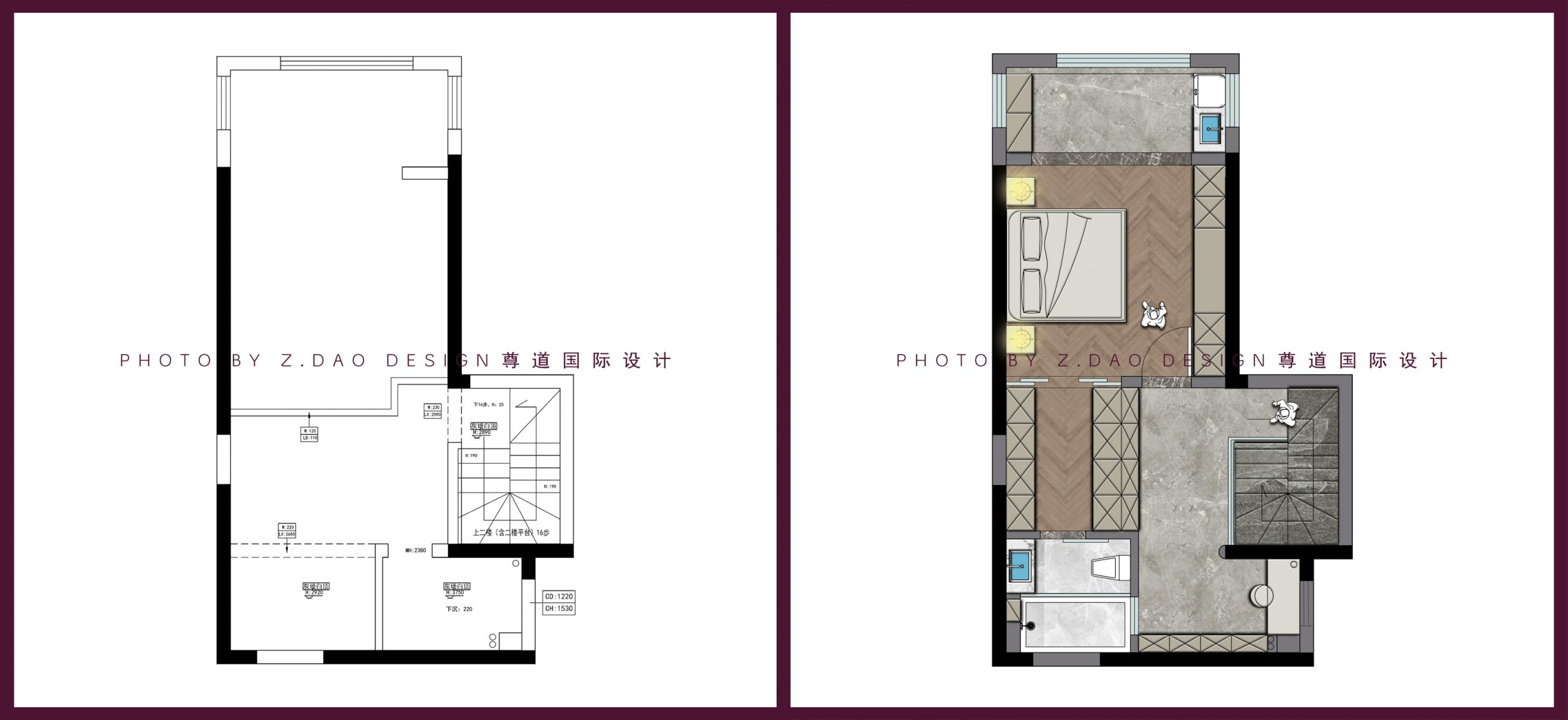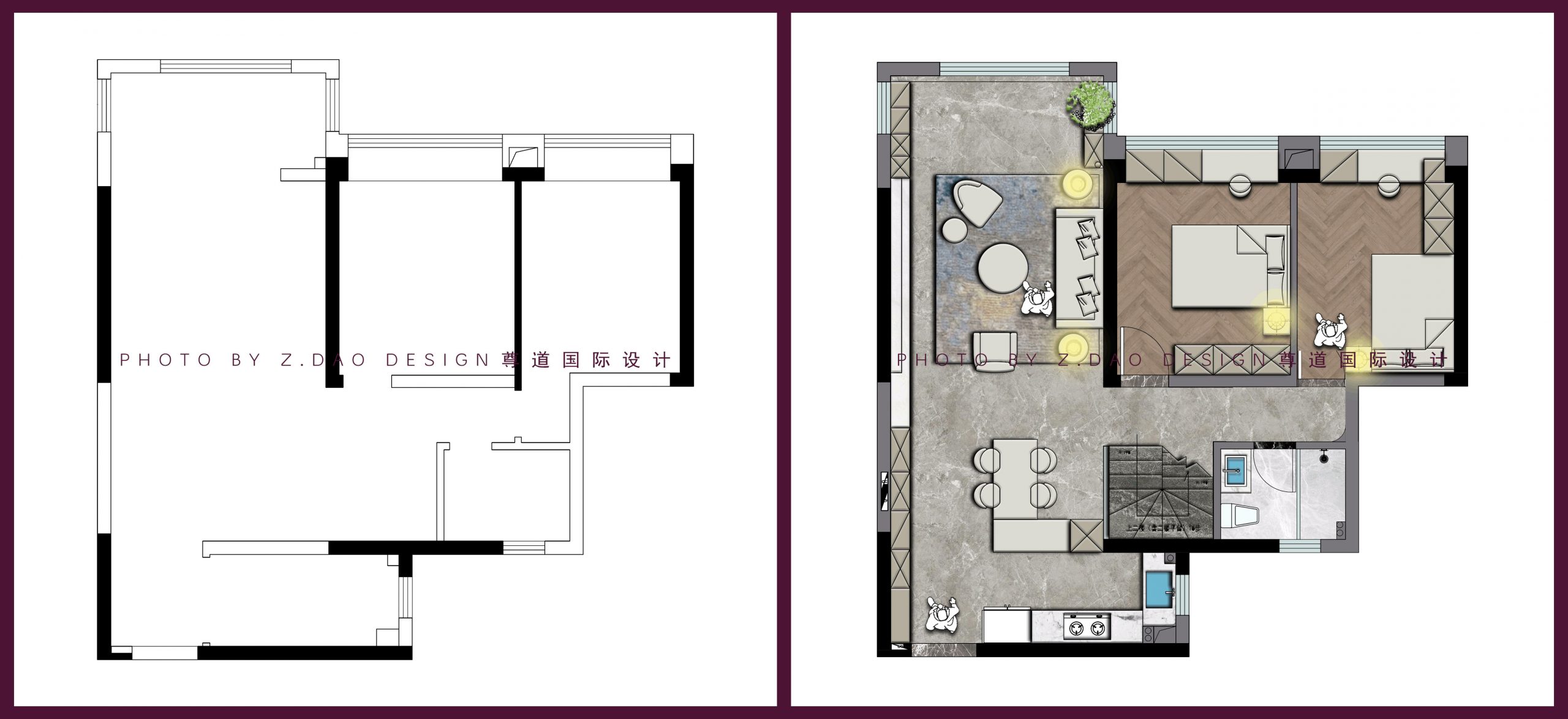 ▲二层原始户型图vs平面布局图