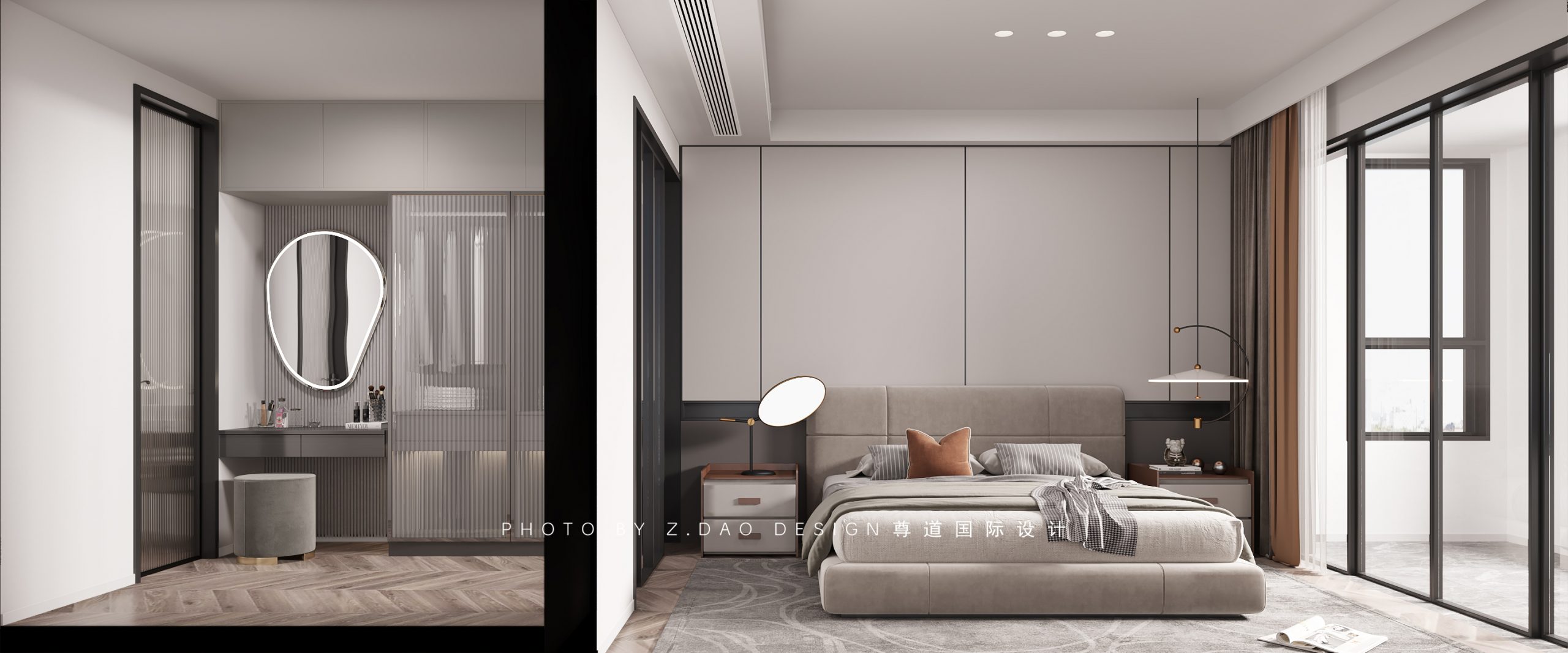 二楼整体空间套房设计,满足洗漱、收纳、睡眠等功能。