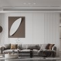 弧角的背景造型的出现,打破了传统沙发背景造型,墙面的造型抽缝,同时也把视线抬高,整体看上去更加有艺术性。