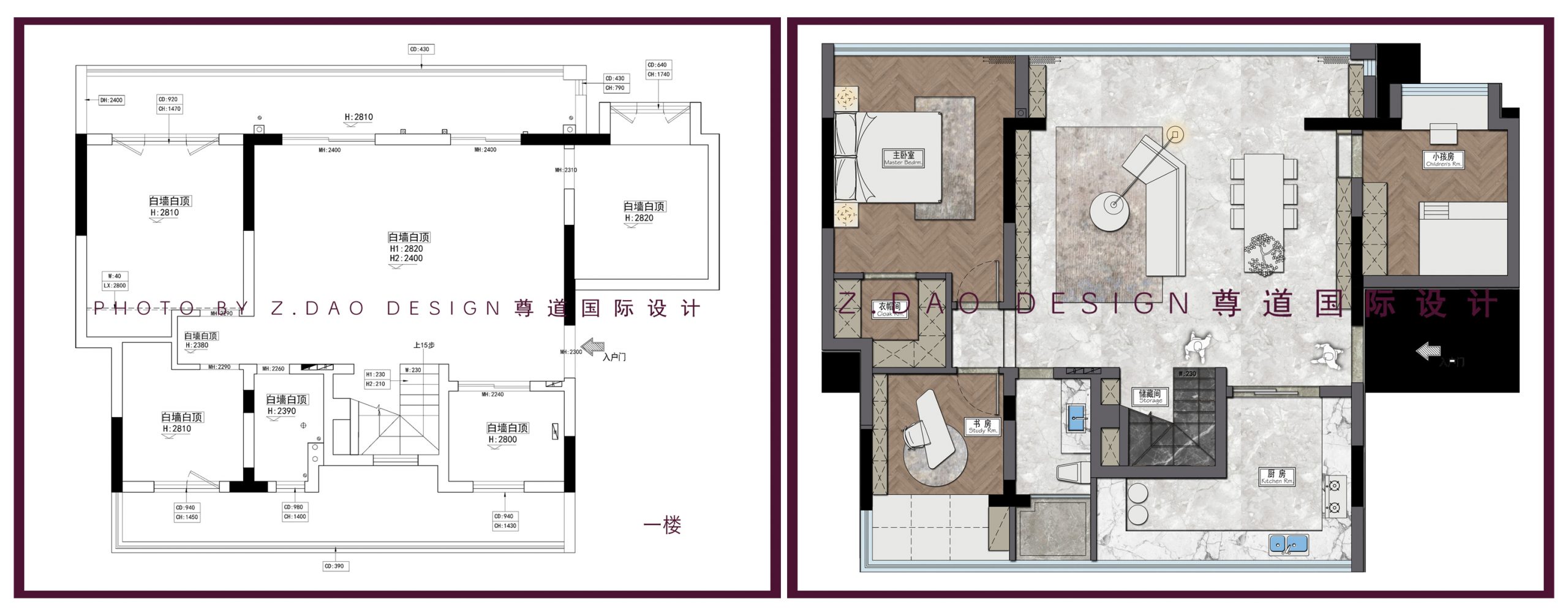②调整一楼女儿房空间布局,增加衣帽间;