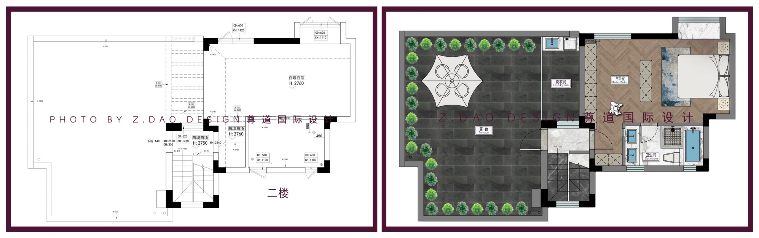 ▲二层原始户型图VS平面布局图