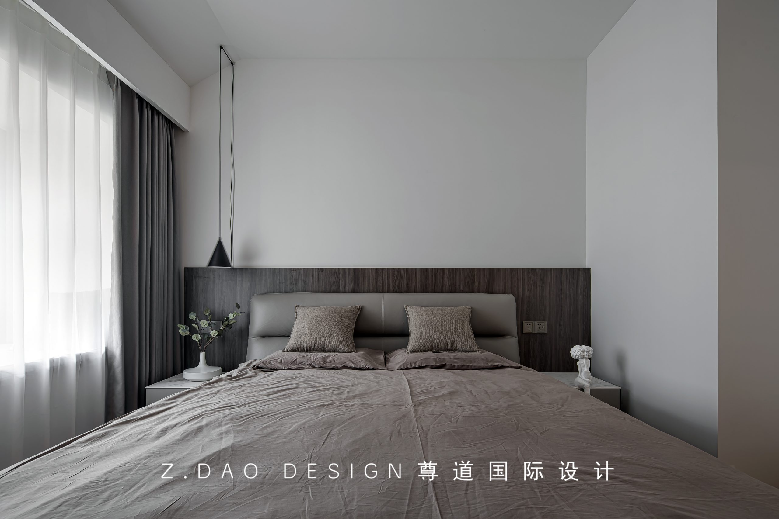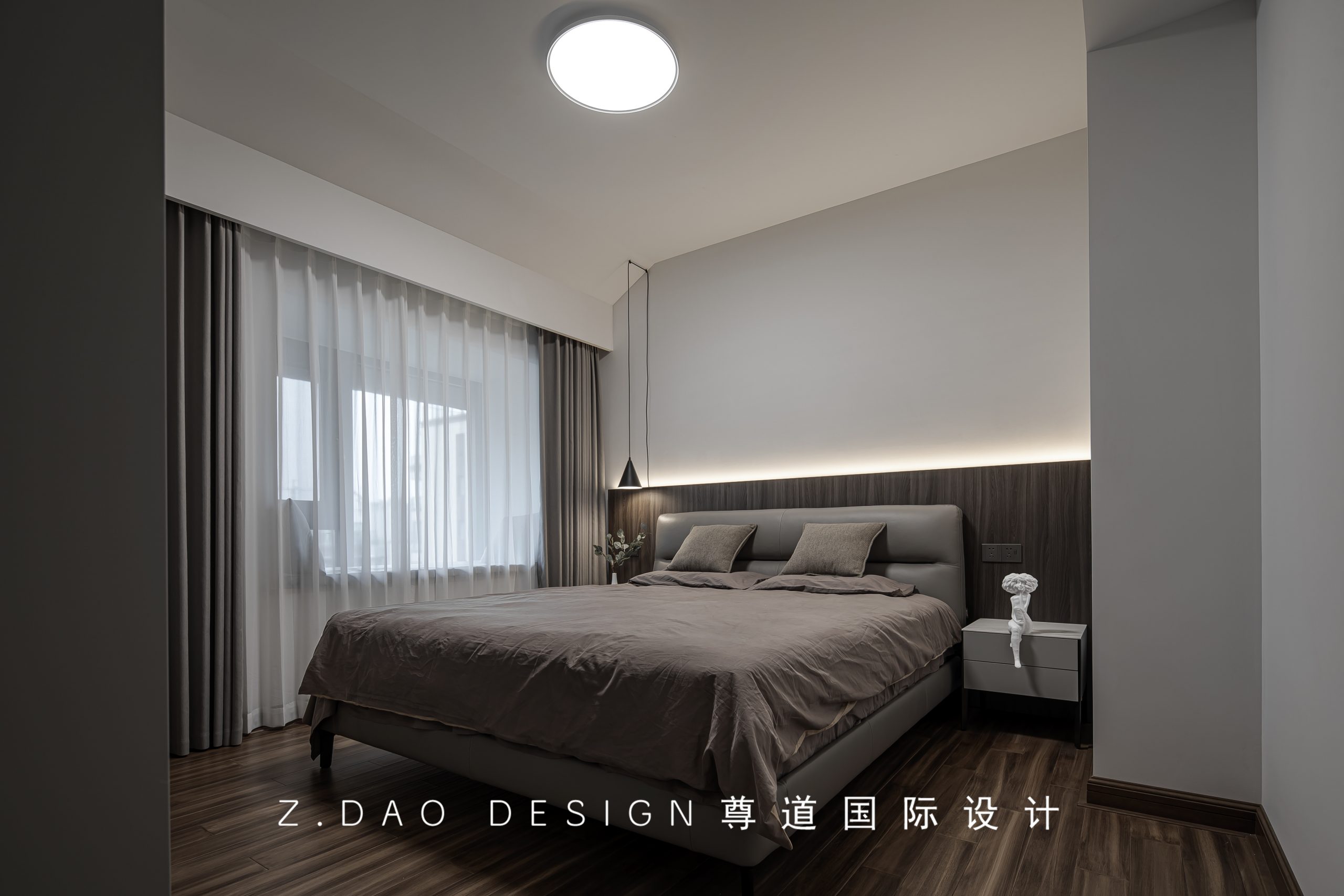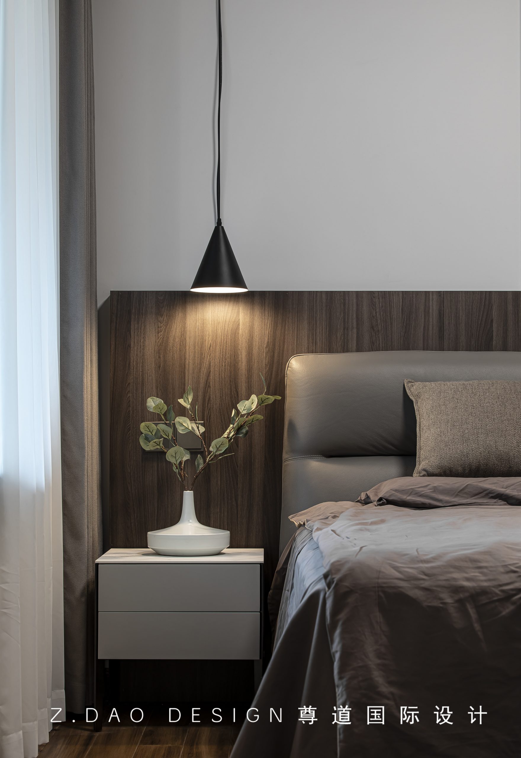 空间延用胡桃木做床头背景,去繁就简,营造舒缓静谧的入睡氛围。天然木制元素的加入,为空间注入自然生命力,让人从中获得宁静,回归纯粹的居住属性。