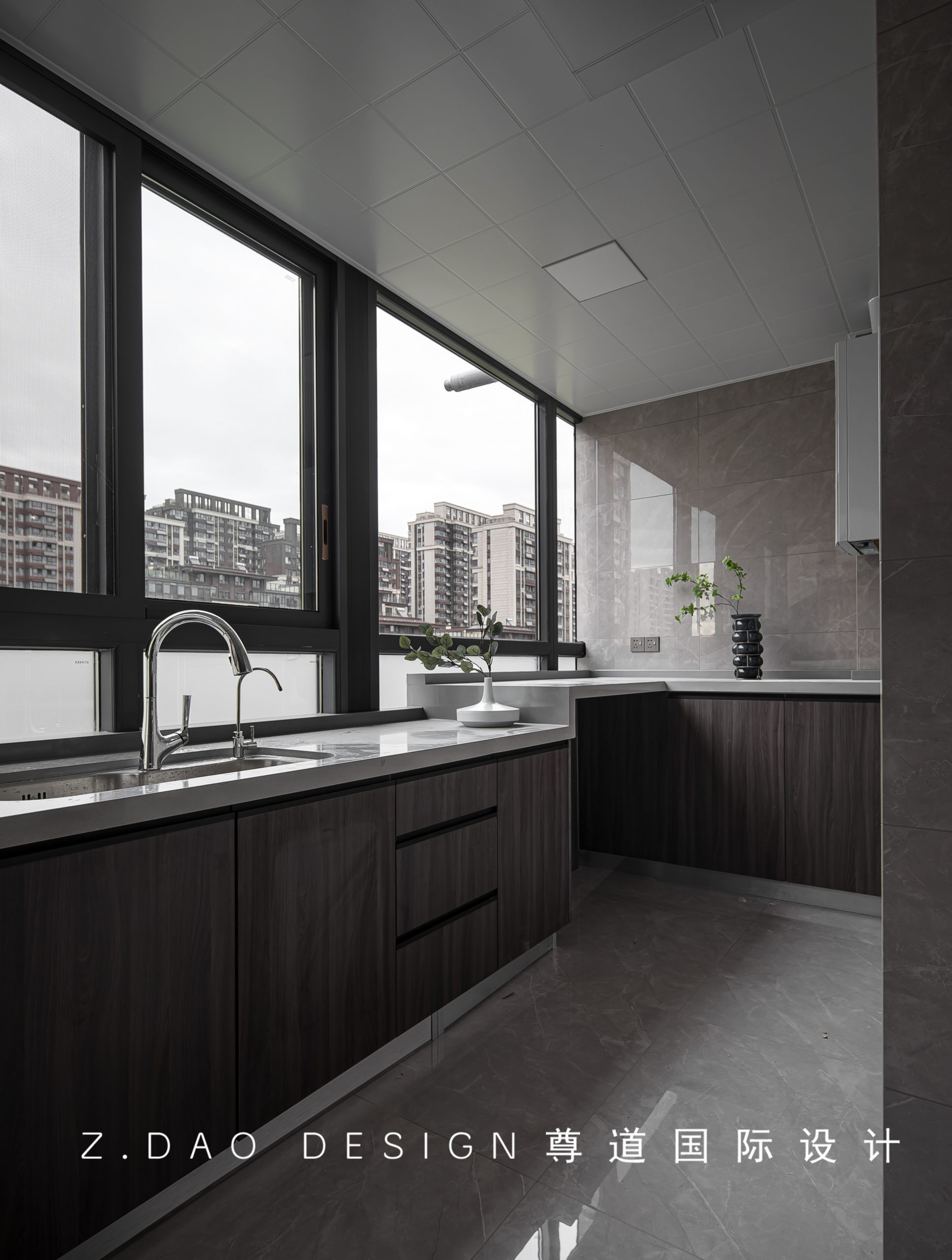 细节处不同材质呼应,构建差异,通过点线面的比例分割丰富空间形态。营造出符合居者审美情绪和生活哲学,硬朗、理性、简约极致的舒适空间。