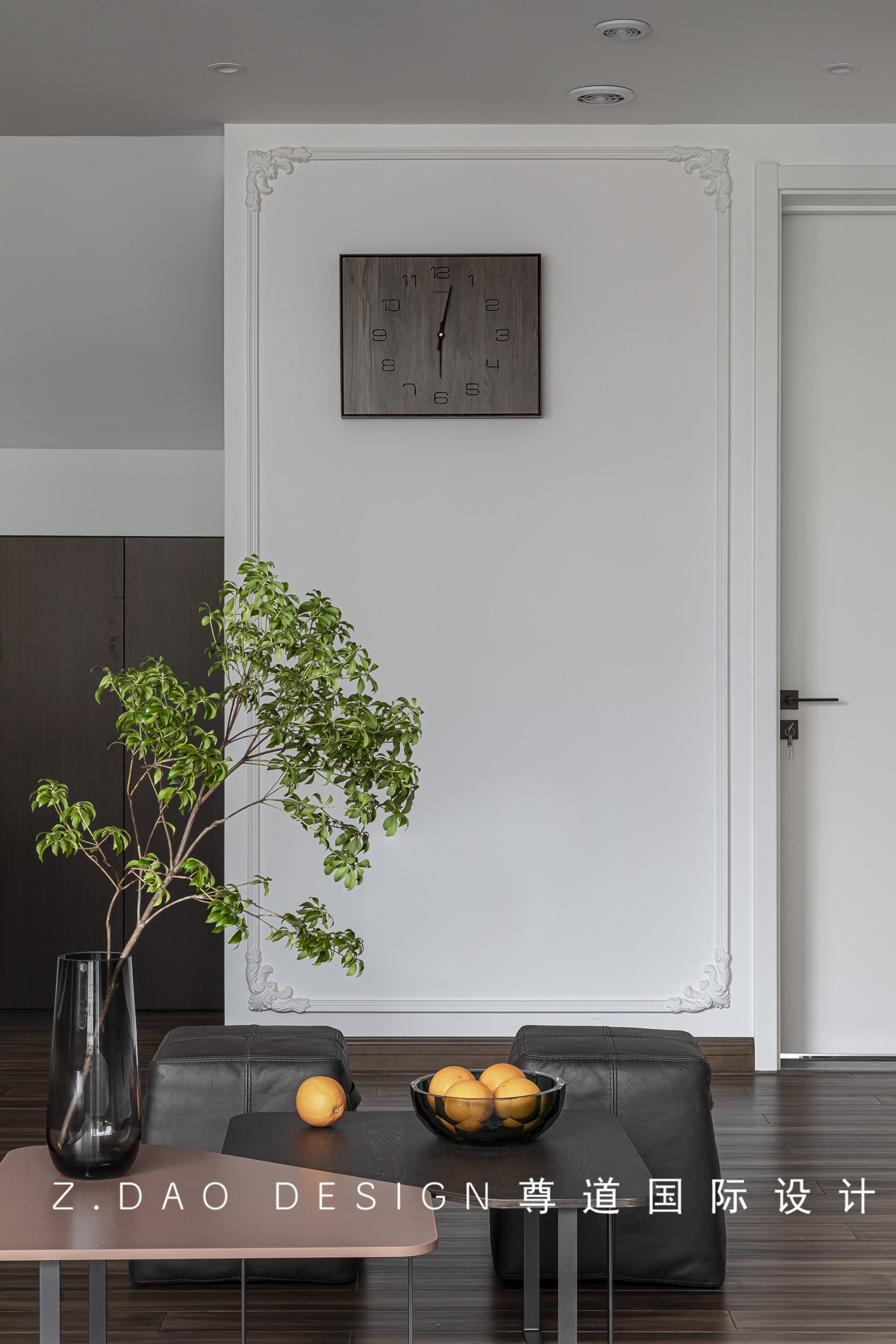 入户尽头处,艺术挂画为空间增添几许暖意,些许的点缀和跳跃赋予了空间生机与活力。