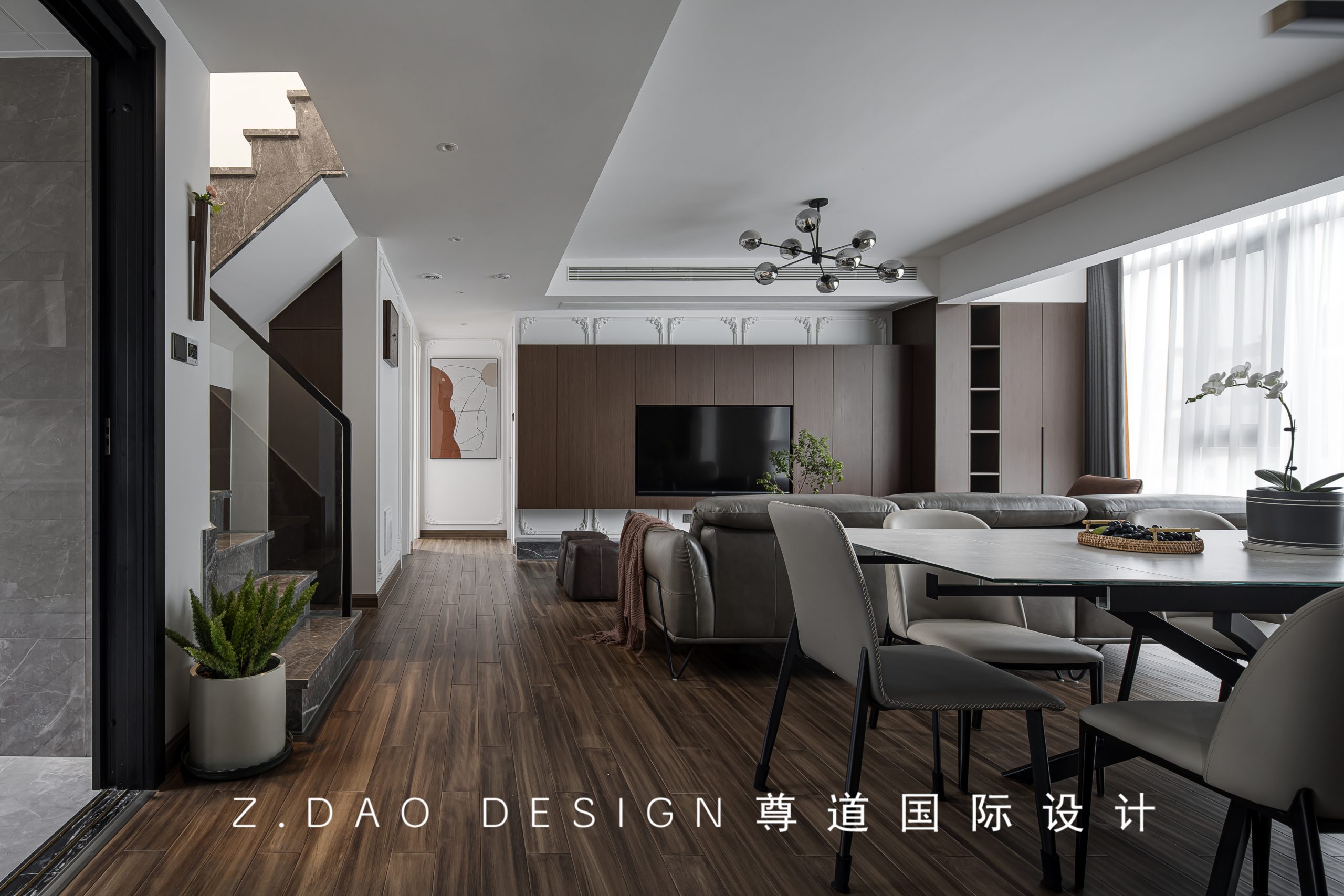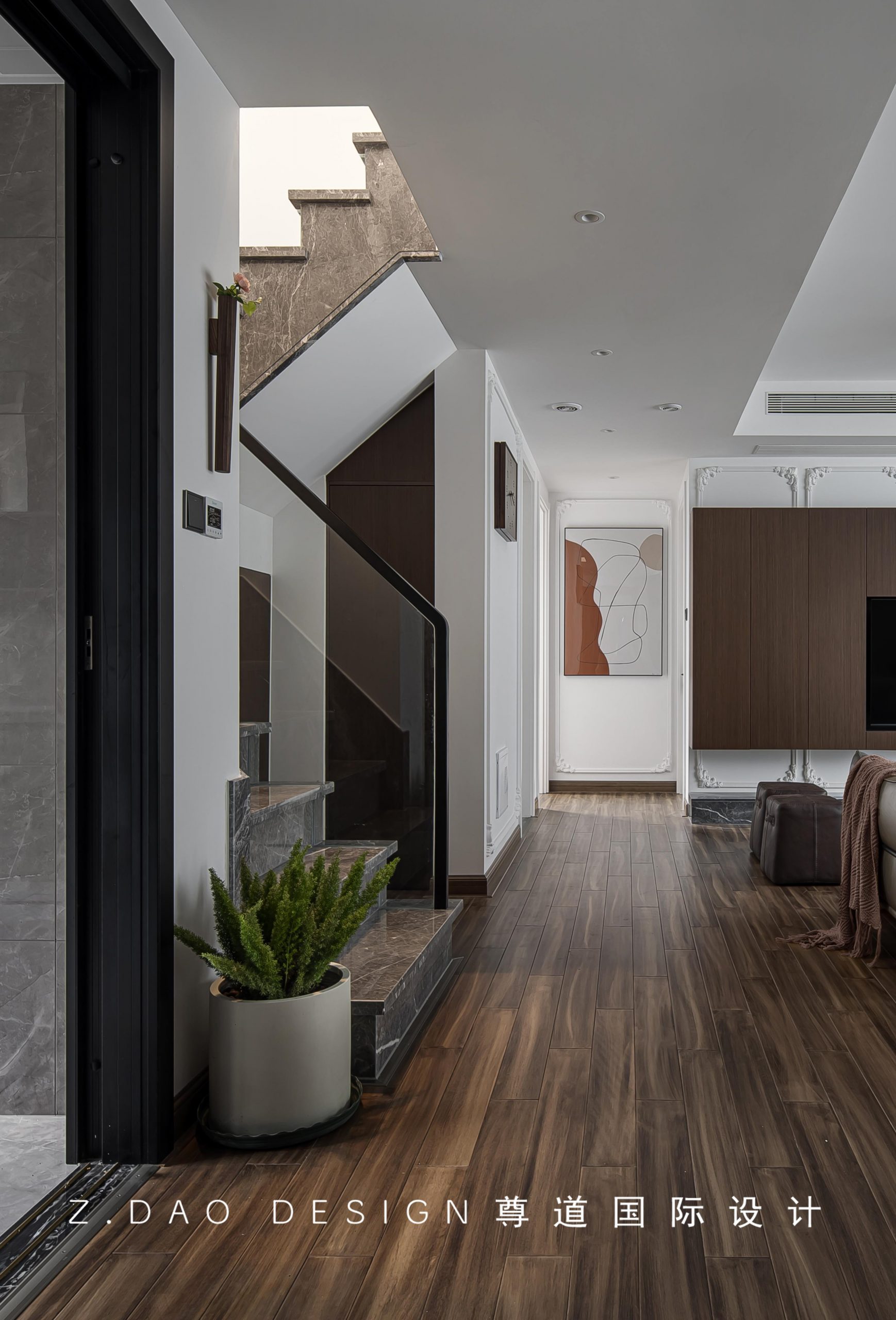 入户的直线走廊设计,贯穿整个一层空间。