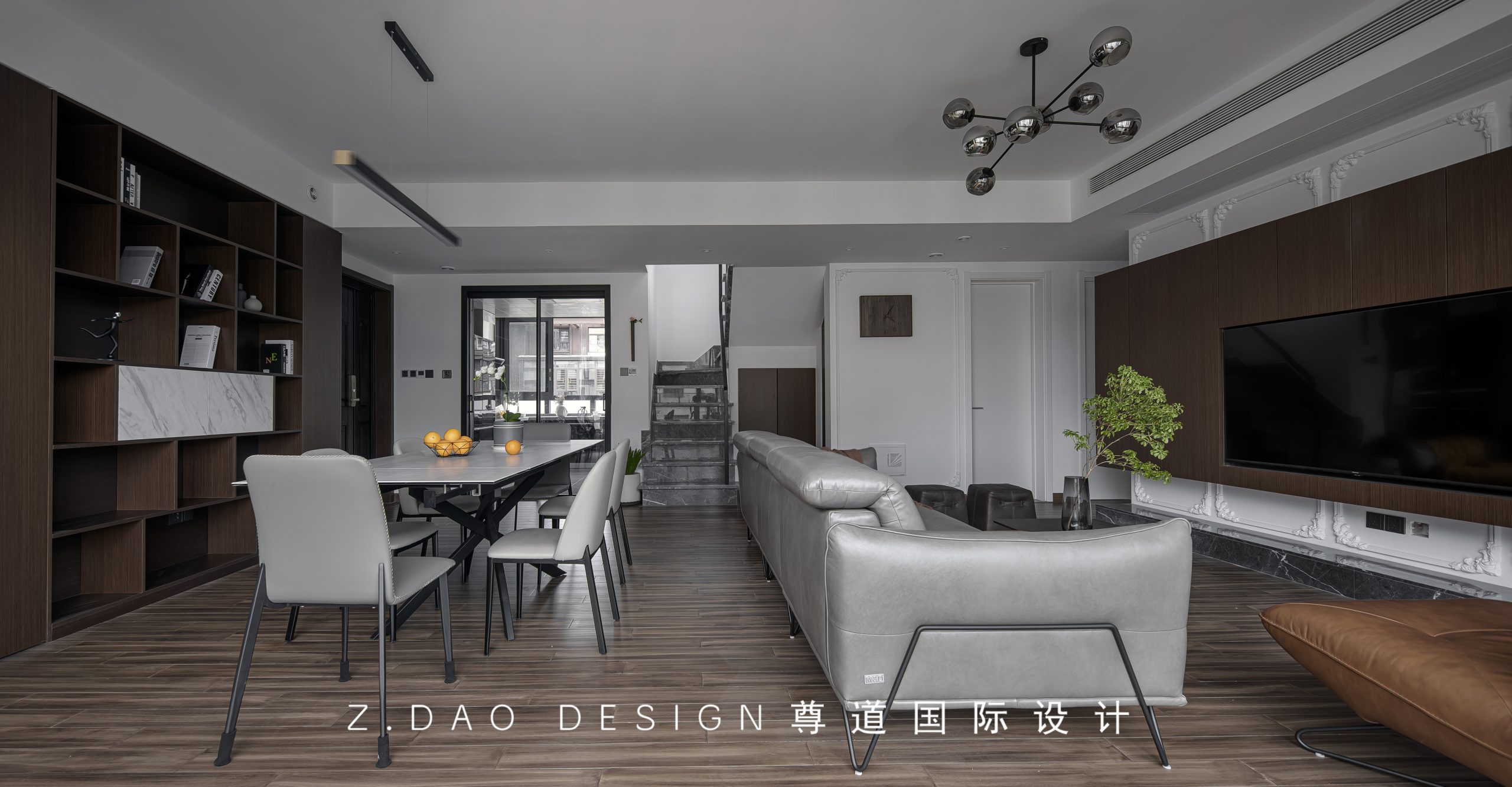客餐厅一体,餐厅与客厅似分而连,似连而分,高级灰挥出优雅的绅士风度,丰富了客餐厅部分的触感与质感,也完美诠释了屋主对生活品质的追求。
