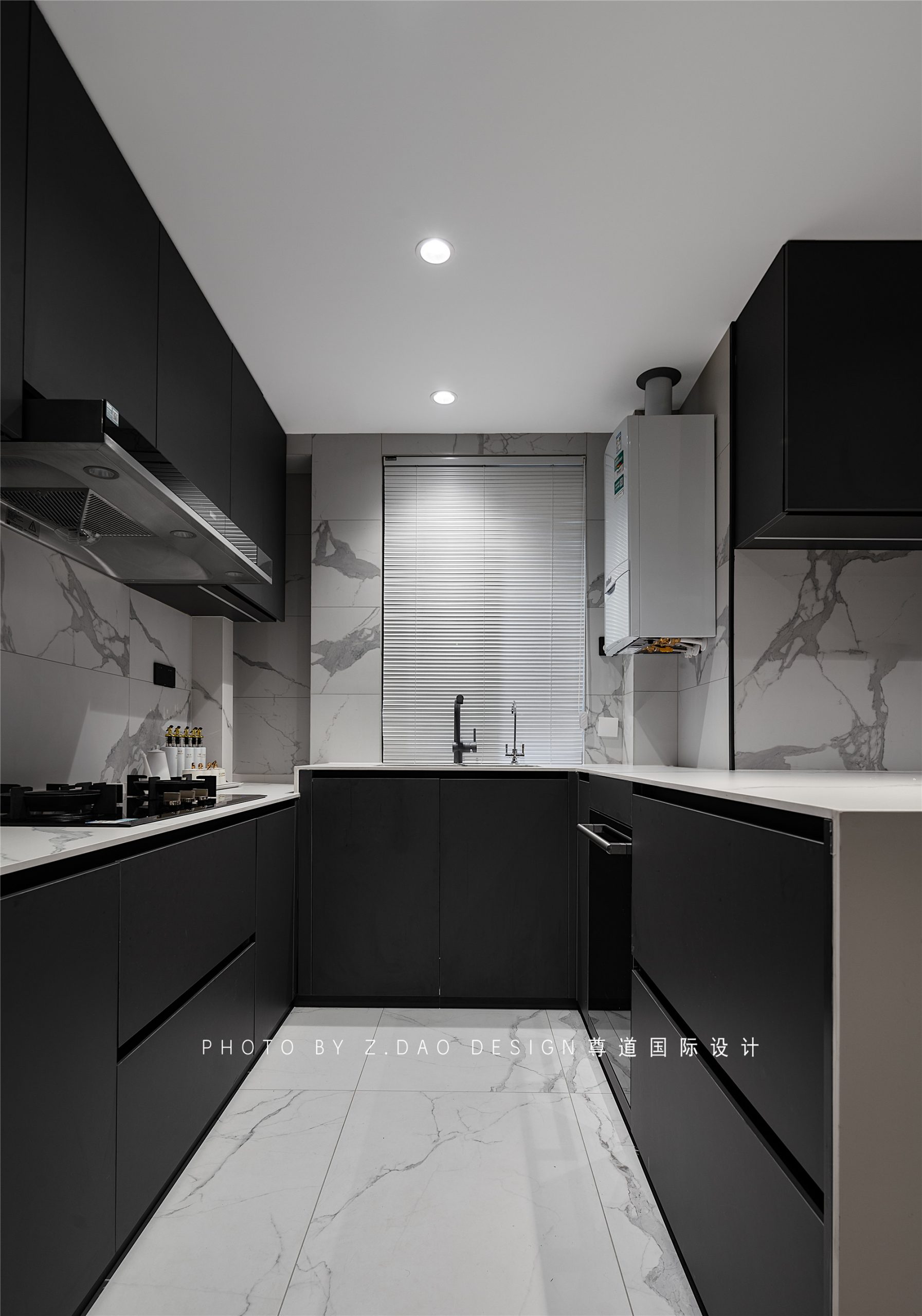 敞开式U型厨房,可以充分利用空间,扩大操作面积、操作起来省时省力。
