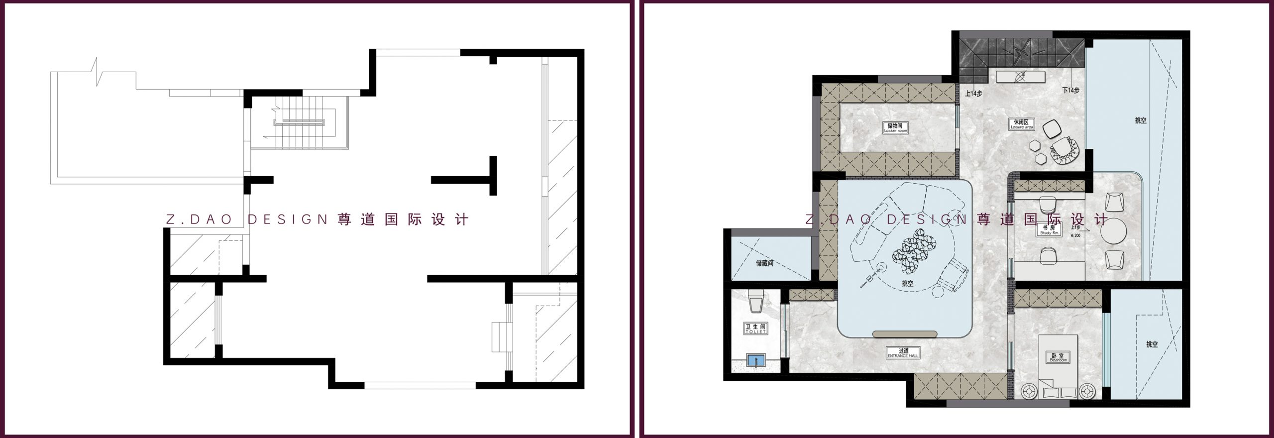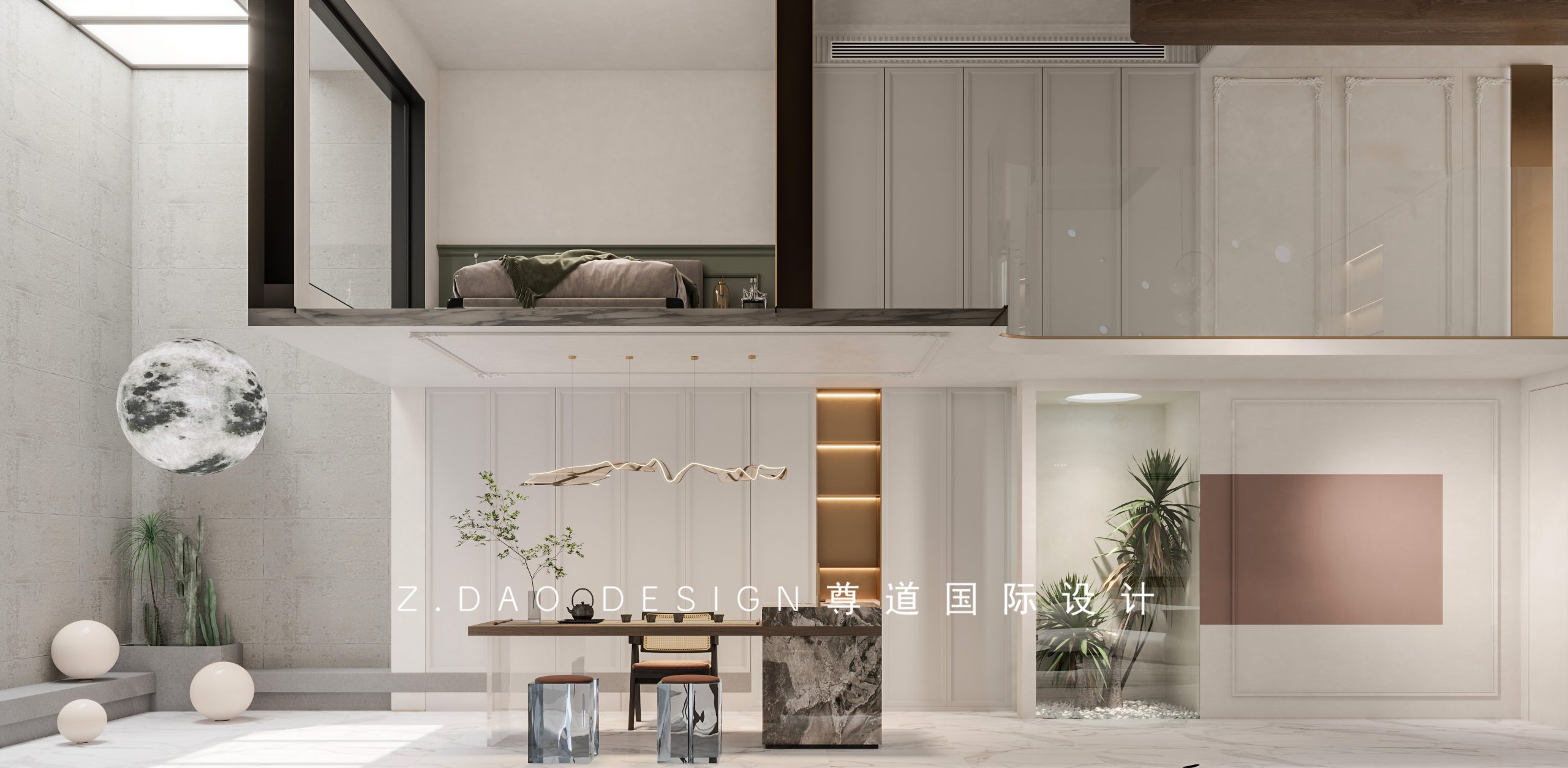 对于地复式的设计,结构和地下室的防潮是很重要的,我们在布置功能布局的同时,更加要关注到结构本身。合理的空间布局一定是在上下空间的统一考量,如何突破空间的束缚,就是设计的最大化。
