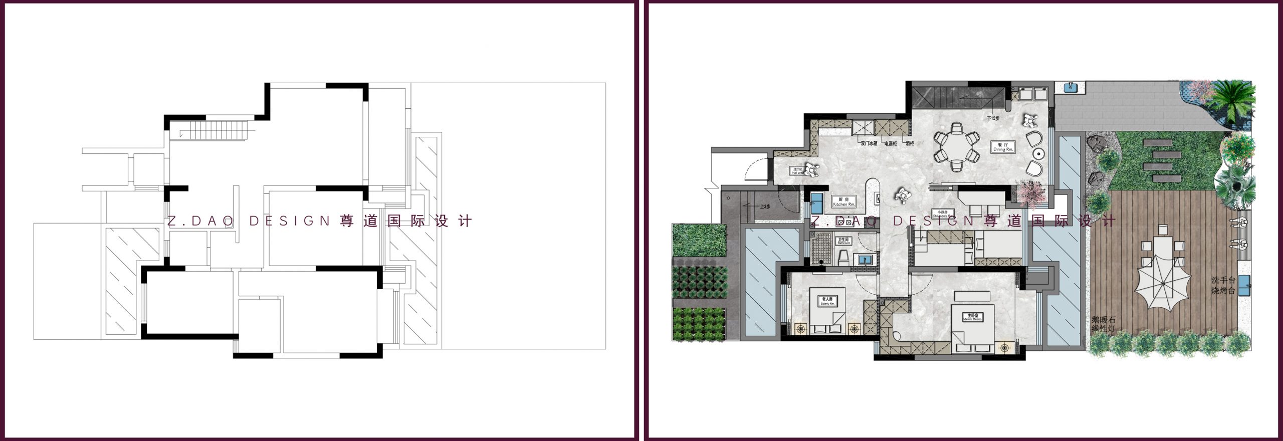 ▲一层原始户型图vs平面布局图