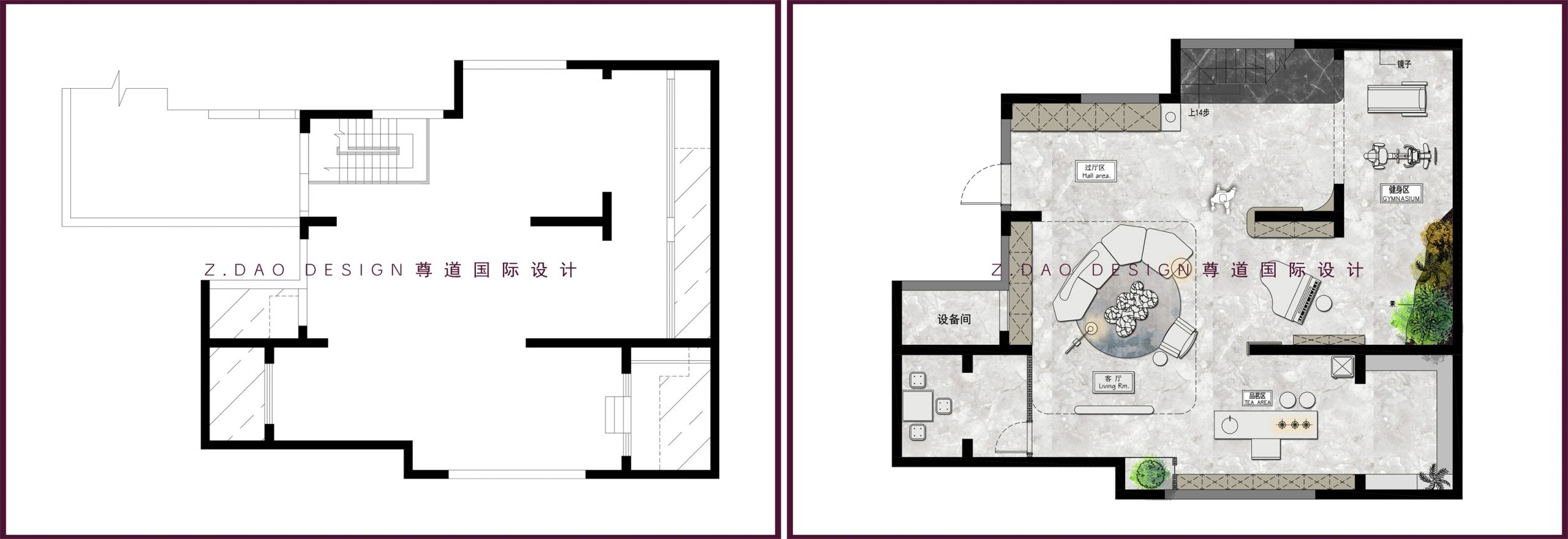 ▲负一层原始户型图vs平面布局图
