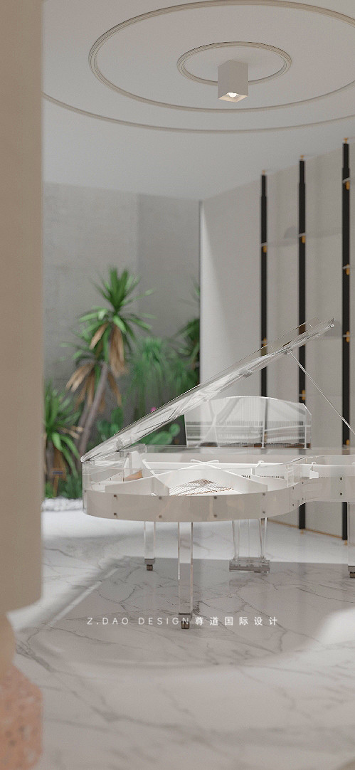 第二个亮点之处在于钢琴排放空间的设计,在练习钢琴的同时,又能观赏到天井的绿色景观,洗洁心灵之窗。