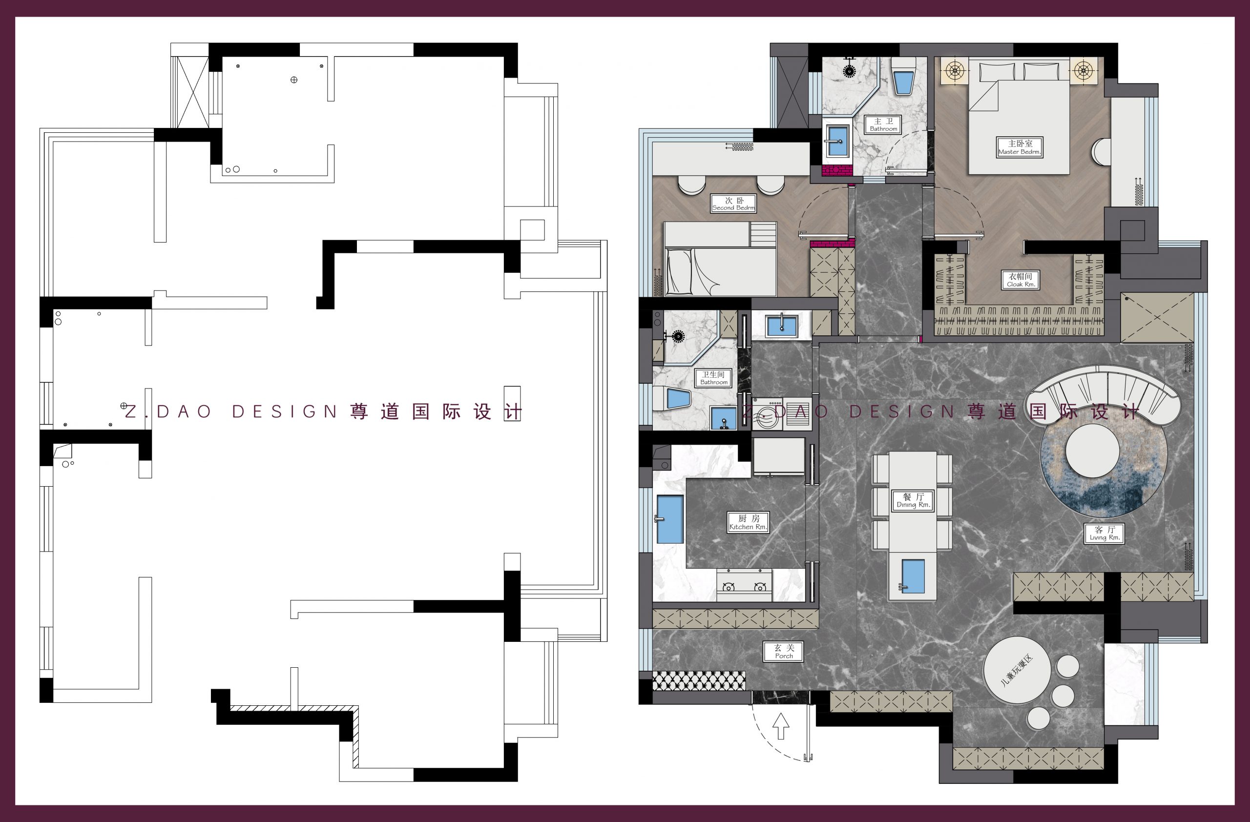 3. 客房与客厅之间墙体拆除,改做开放式儿童玩耍区。