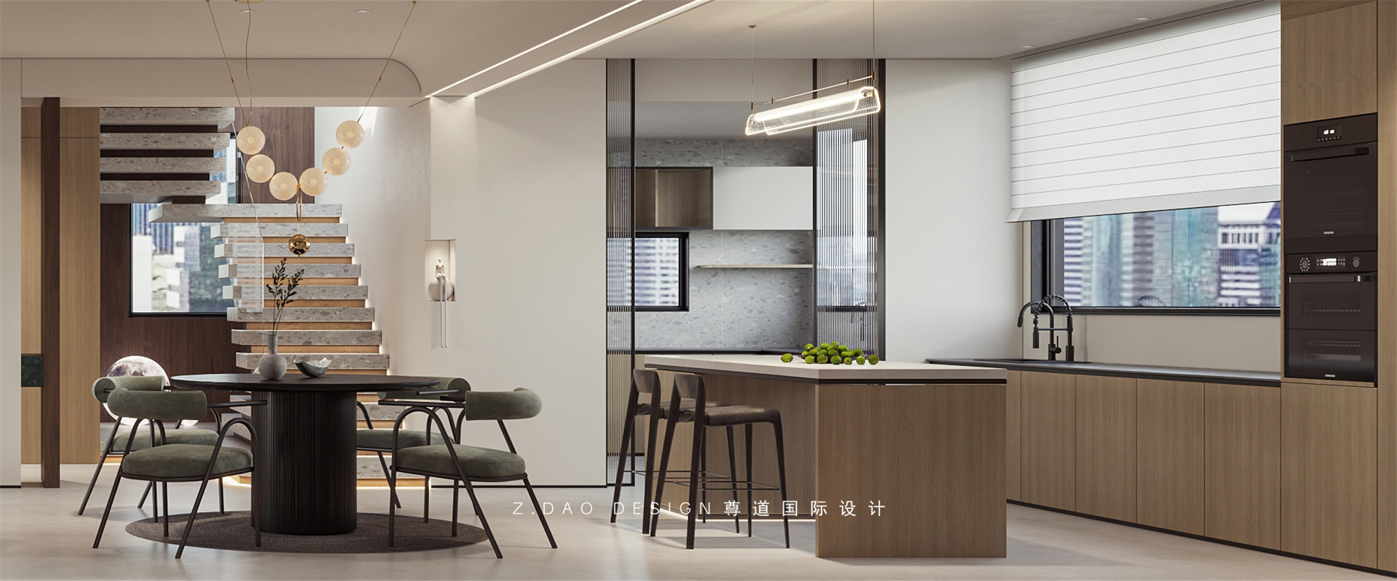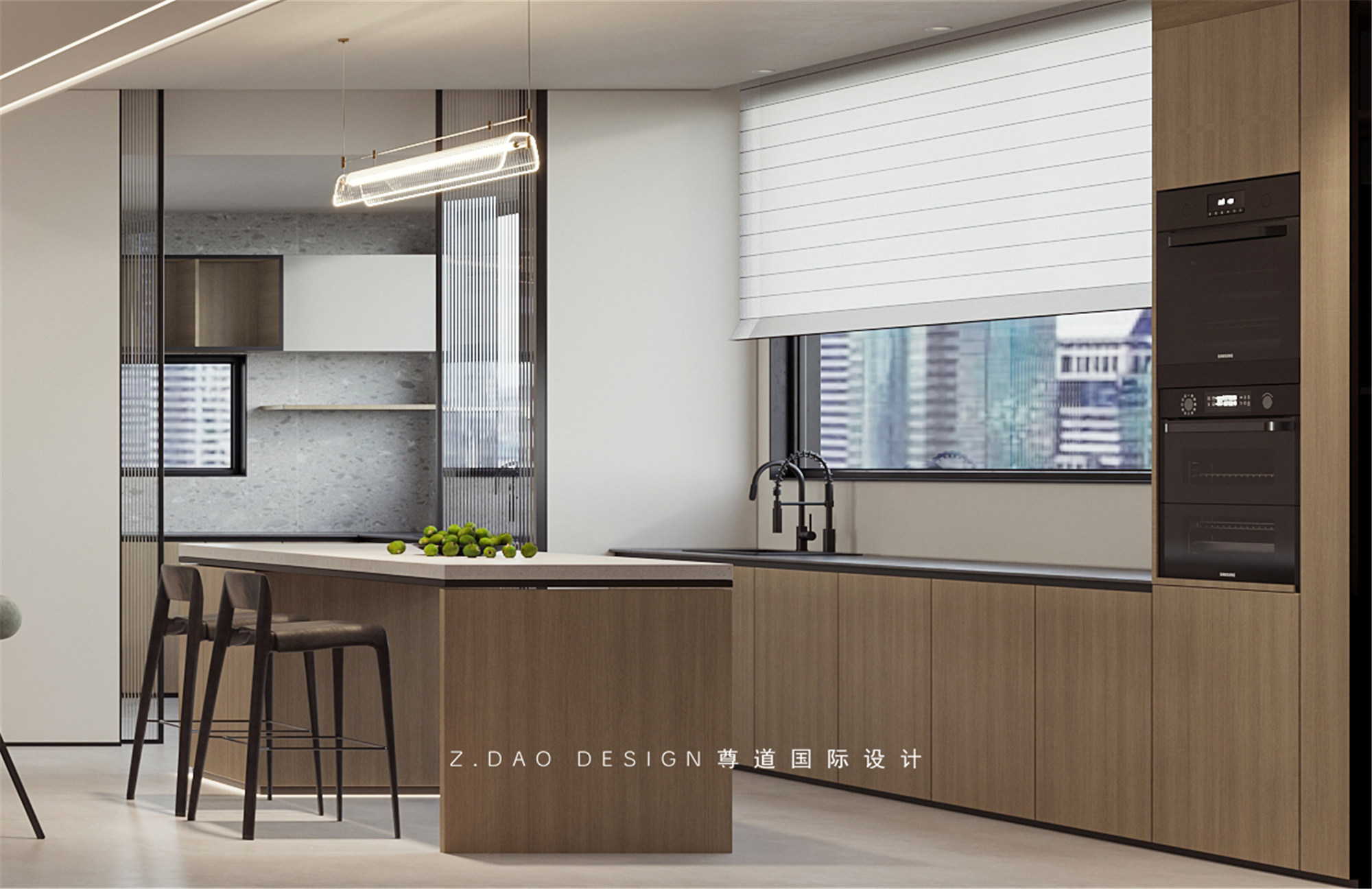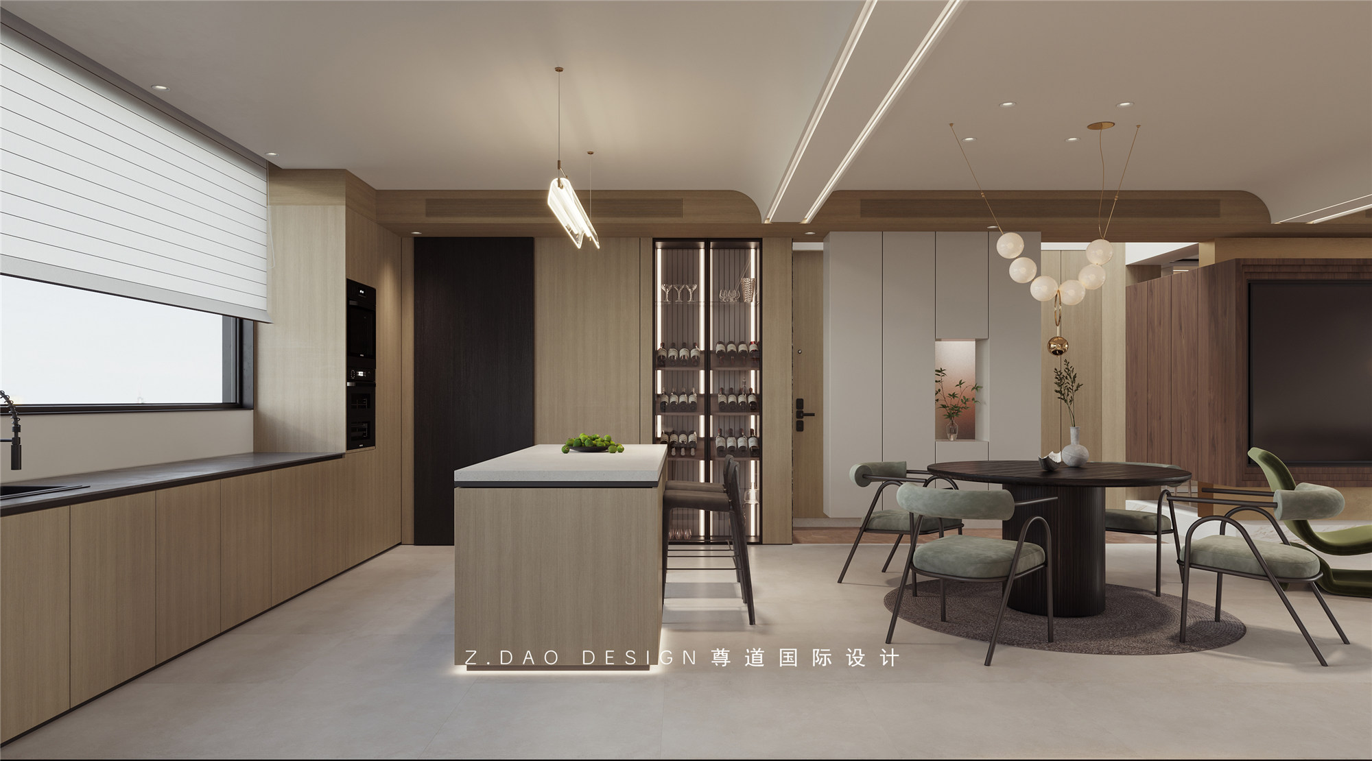 岛台的设置便于日常就餐,随意性,舒适和宁静满溢,感受静态的生活美学。