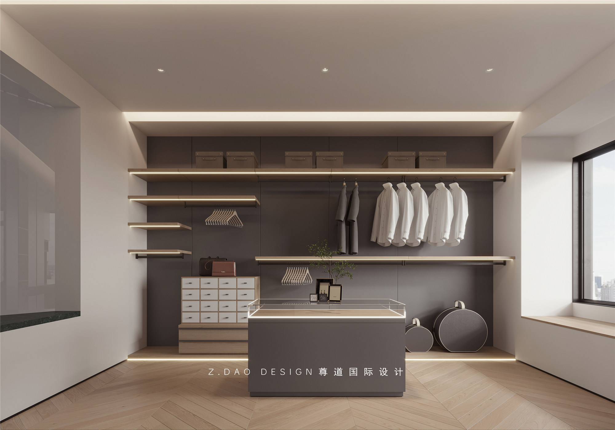 成年人的体面,除了整洁大方的外在形象,还需要内在涵养和有条不紊的生活习惯。深灰色的背板,稳重不失温暖,配合线性层板灯,简洁、明亮,木饰面自带强大的亲和力,一面到顶的衣柜及中岛柜,丰富了视觉层次,开放式的衣柜方便日常的拿取收纳。