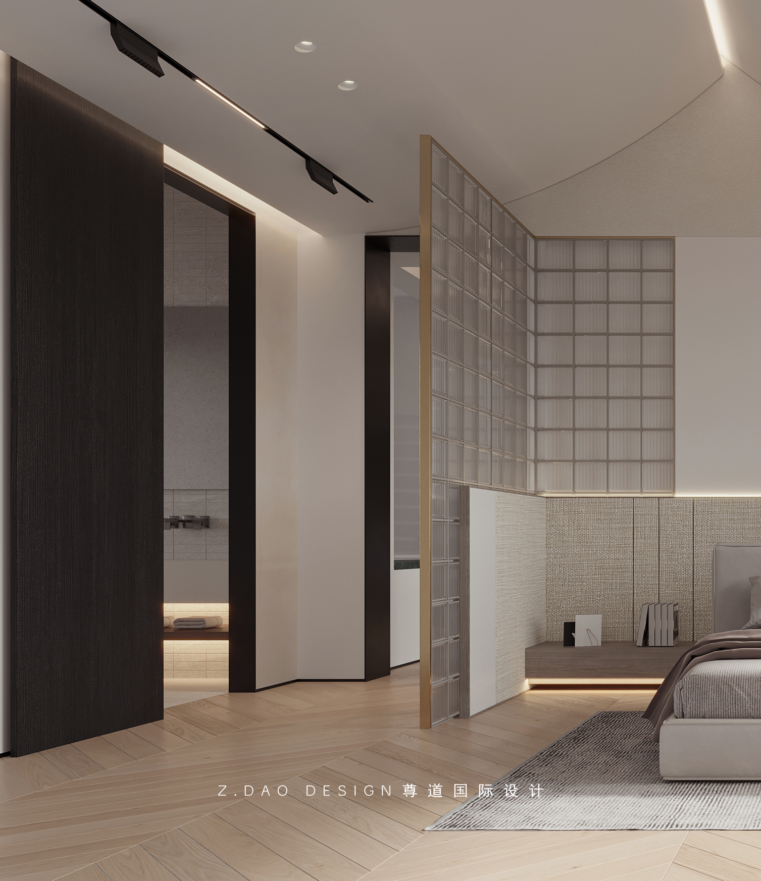 玻璃砖进行光的延伸,空间的精致与柔美呼之欲出。