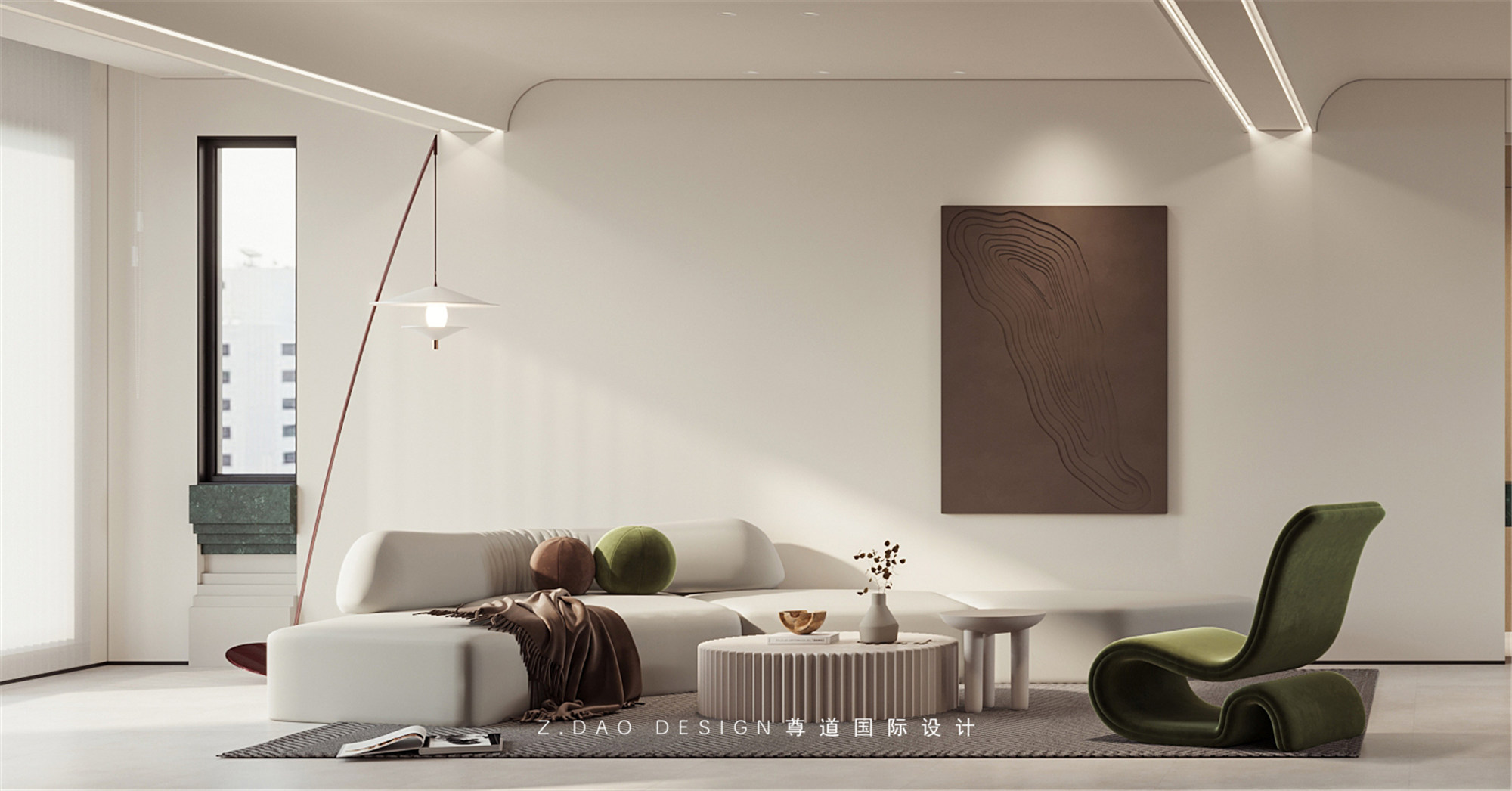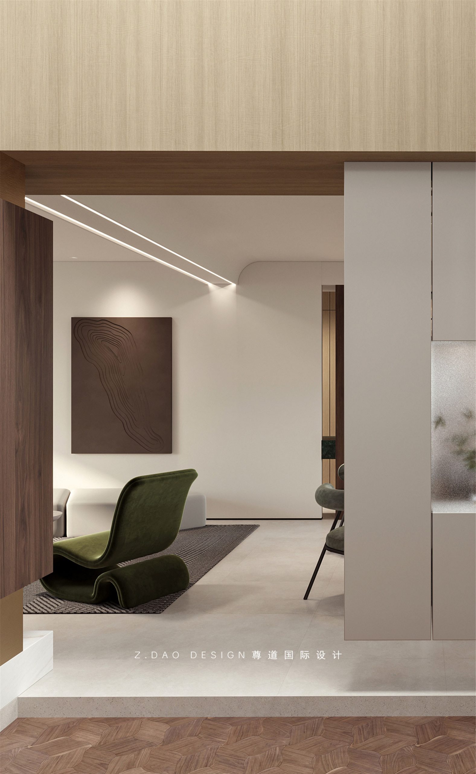 客厅并没有选用传统的布帘而是选用了百叶帘,有纵向的延申感,轻盈通透将阳光构建出秩序感,于此感受光阴流转,探寻生活方式的无限可能,捕获人心最返璞归真的告白。