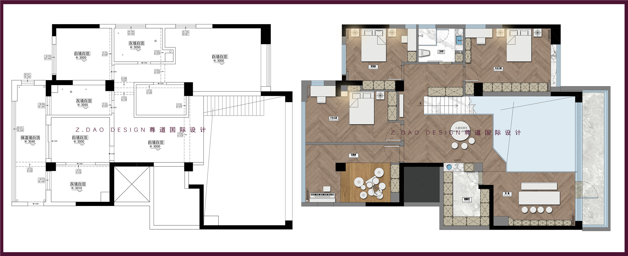 初次碰面,业主便决定把家委托给我们,沉甸甸的托付是一家五口对未来生活的期许。女业主是名全职太太,男业主事业有成,年轻有为。装修过很多套房屋的业主夫妇,对于这套居所的居住品质有很高的要求,想要好好设计一番,于是找到我们。全案设计沟通的过程都是“一稿过”,惊喜于遇见如此同频有默契的业主朋友,尊道为你们量身定制,期待新家的落成。