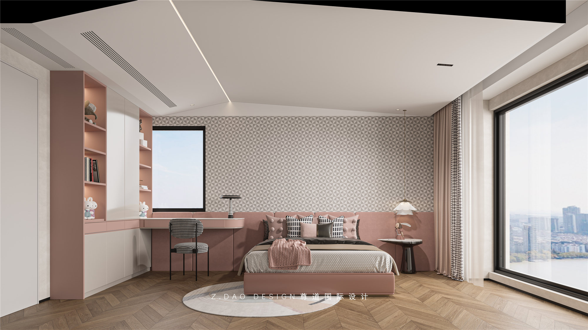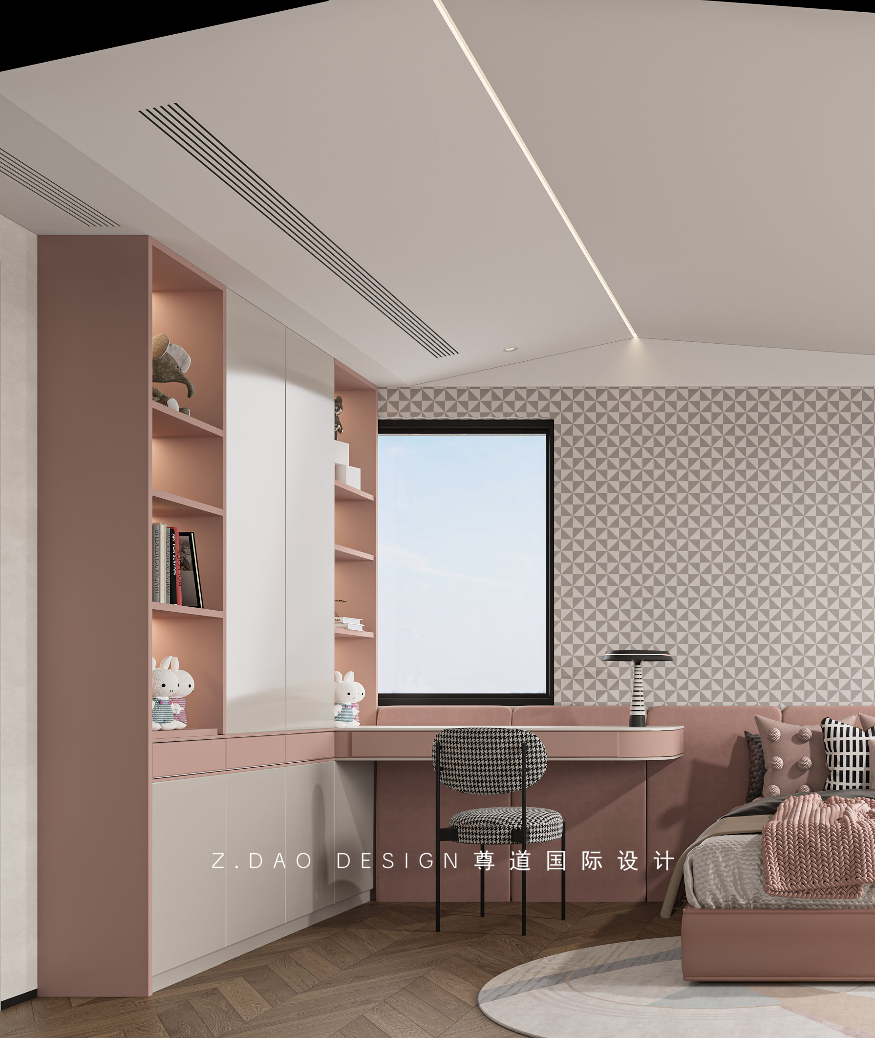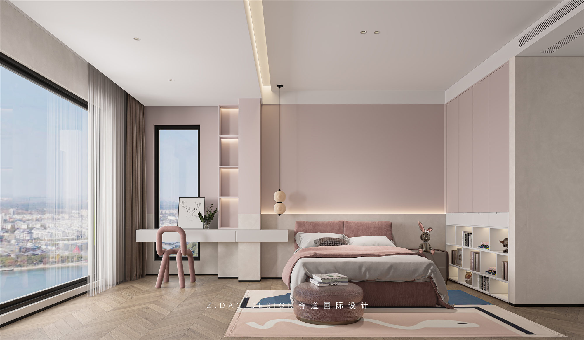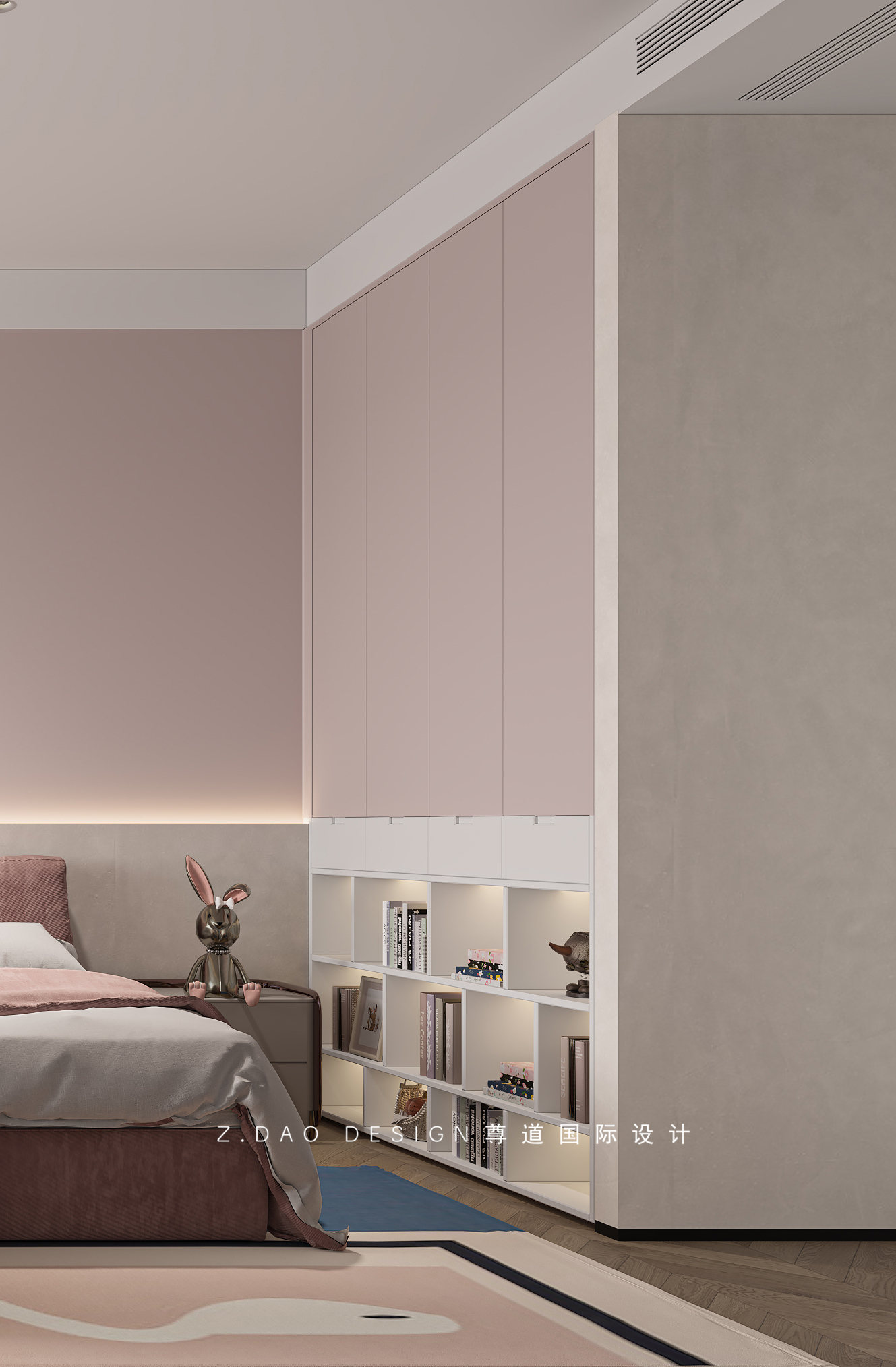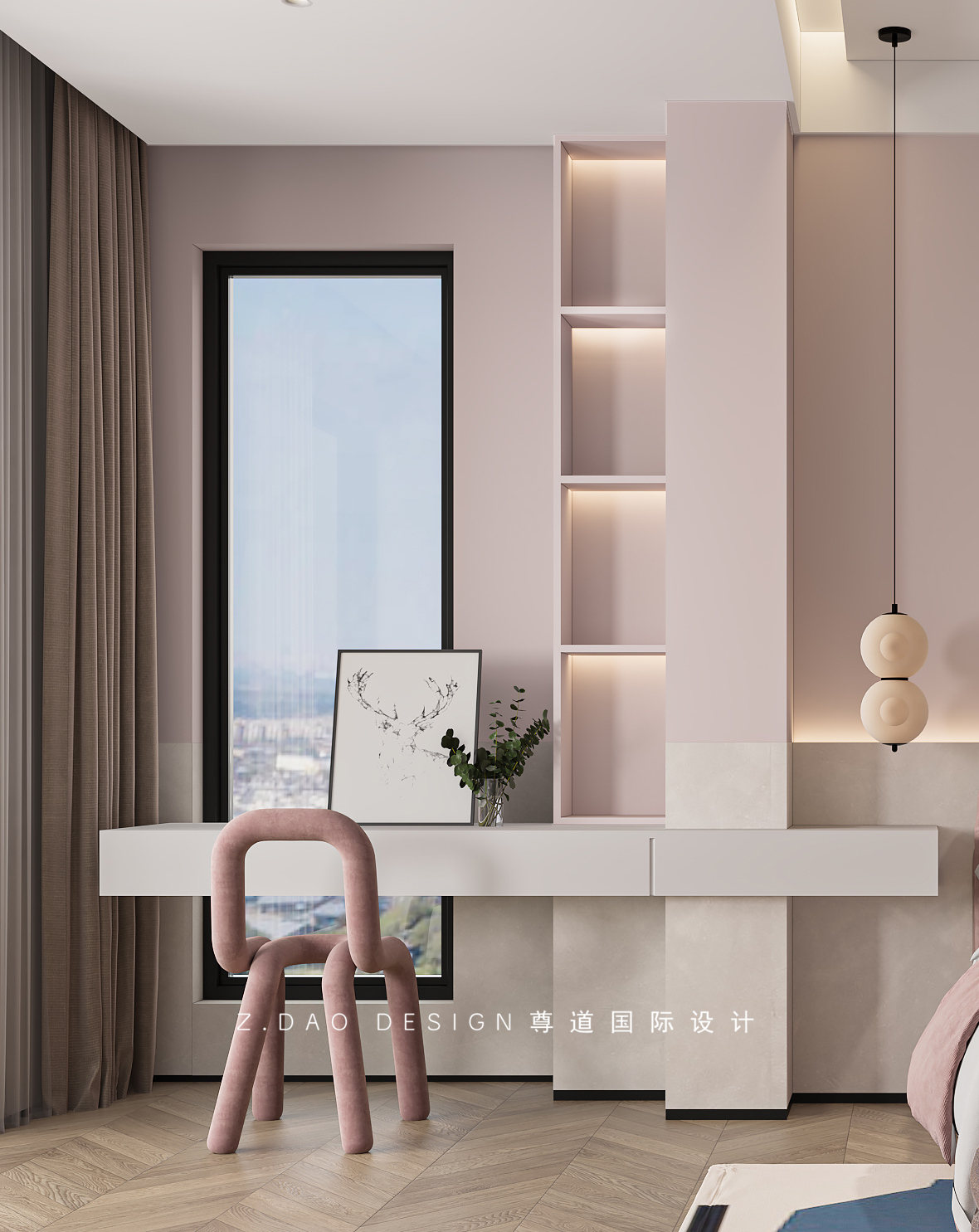 小女儿房的没有浓重的色彩,粉色为主题将女孩的温柔与可爱赋予空间,化境为情,每一处都隐藏着细腻的情感。
