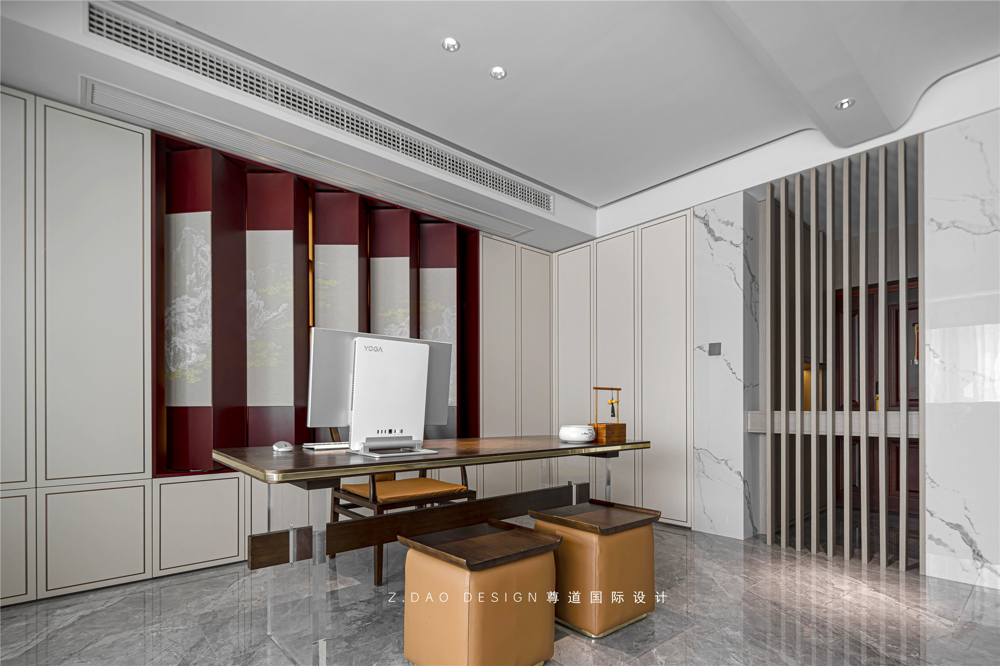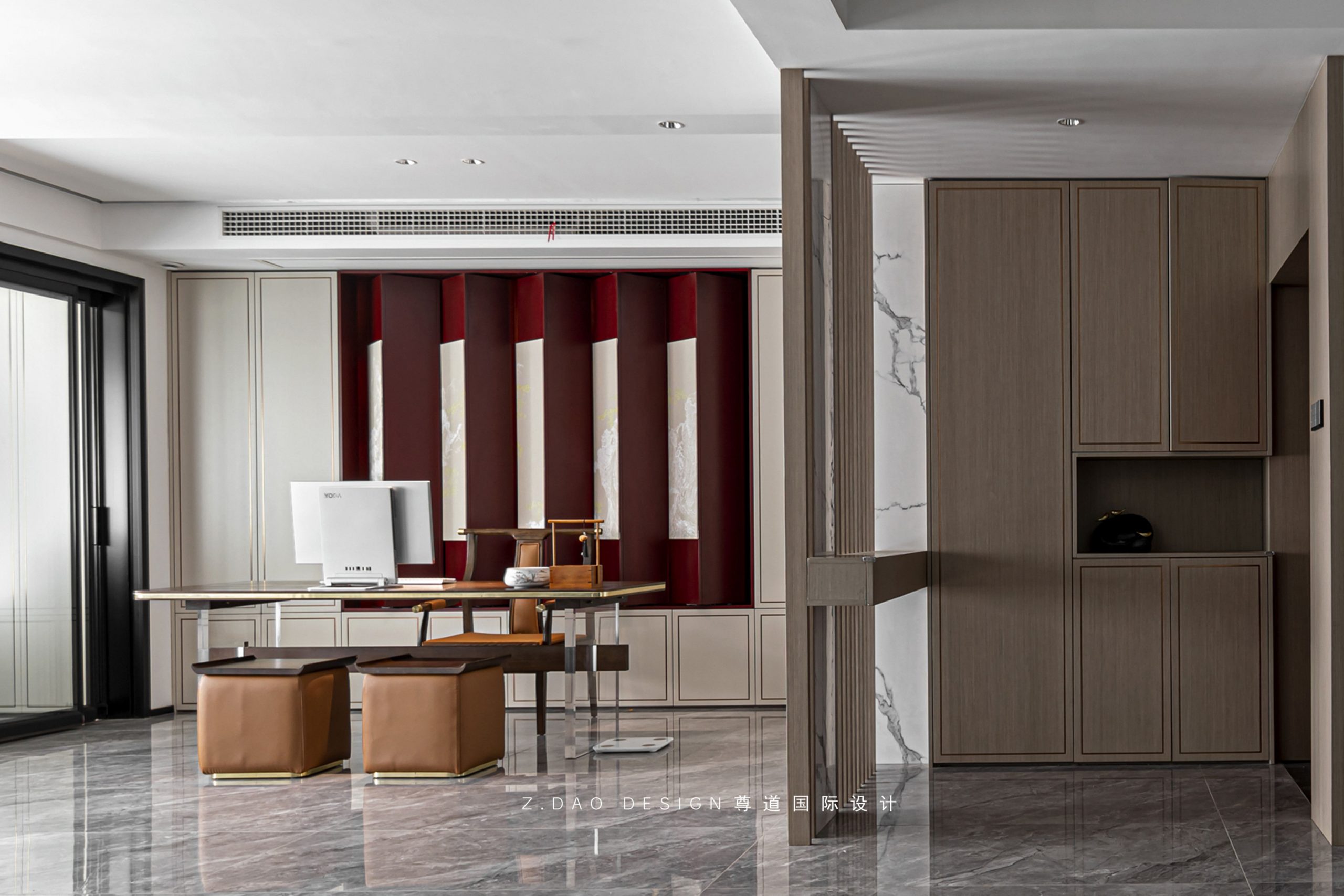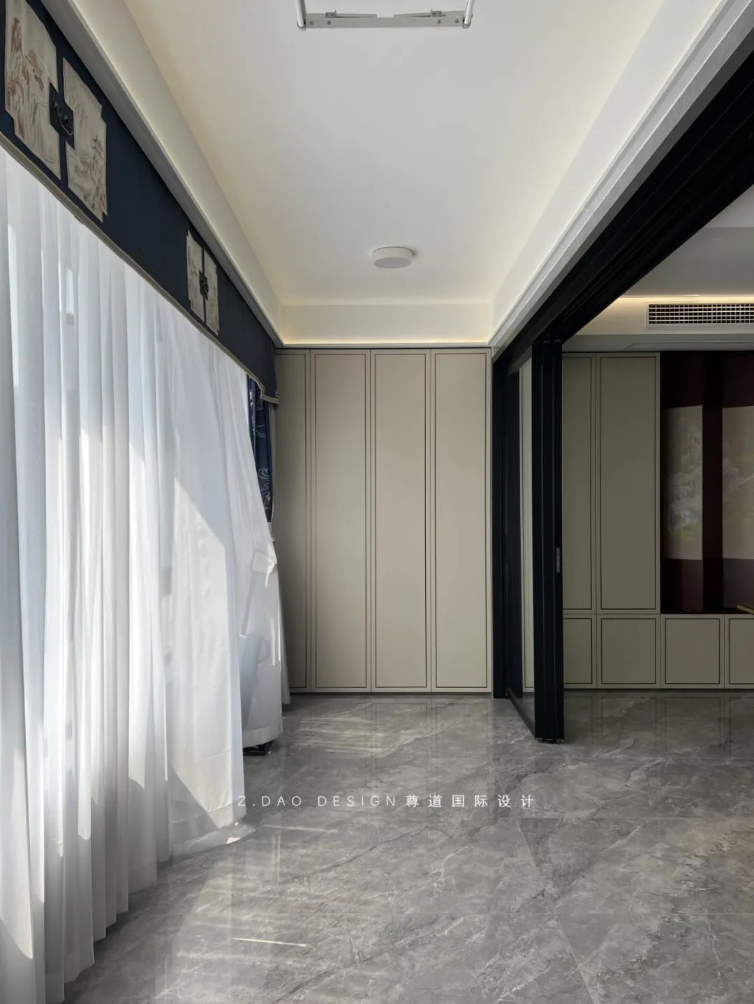 客卧采用榻榻米半屋布局,临窗位置设计书桌,柜体与书桌一体设计,大大提升了空间的利用率。