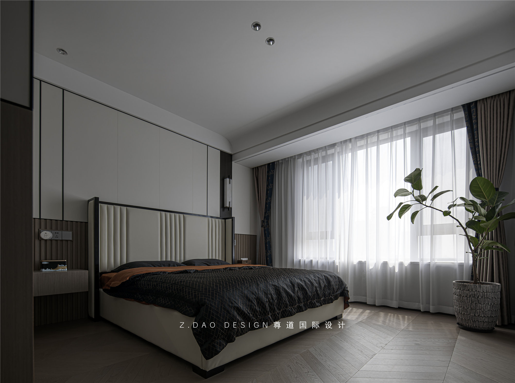主卧设计也是以灰色系为主,素雅的软装床品营造出舒适的气氛,运用光与影营造温馨与时尚氛围,铺叙自然质朴的样貌,营造纯粹的宁静氛围,让人可以放松一切感官,享受生活。
