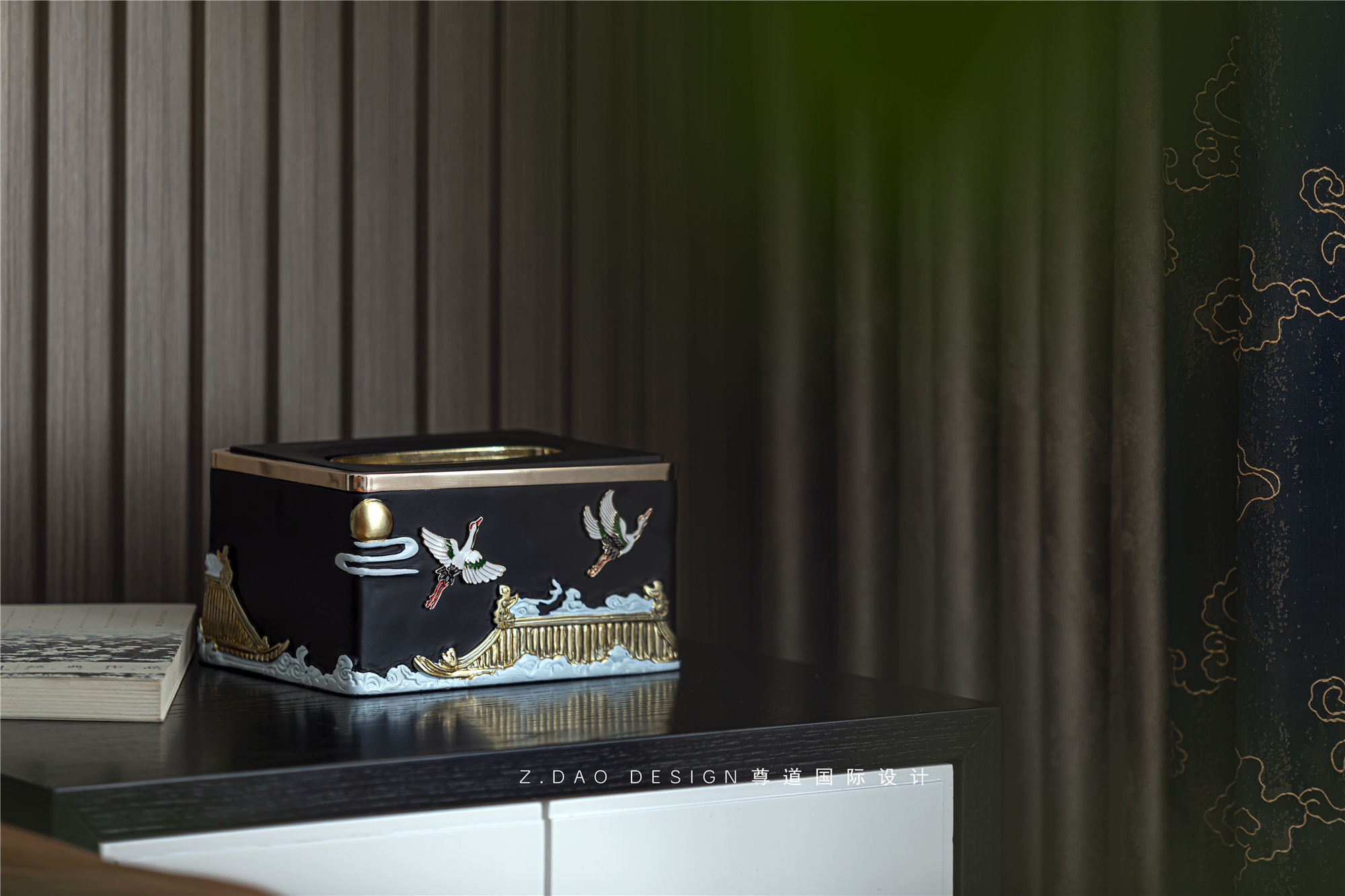 中式风格的抽纸盒、床头柜,于细节处凸显精致雅韵。