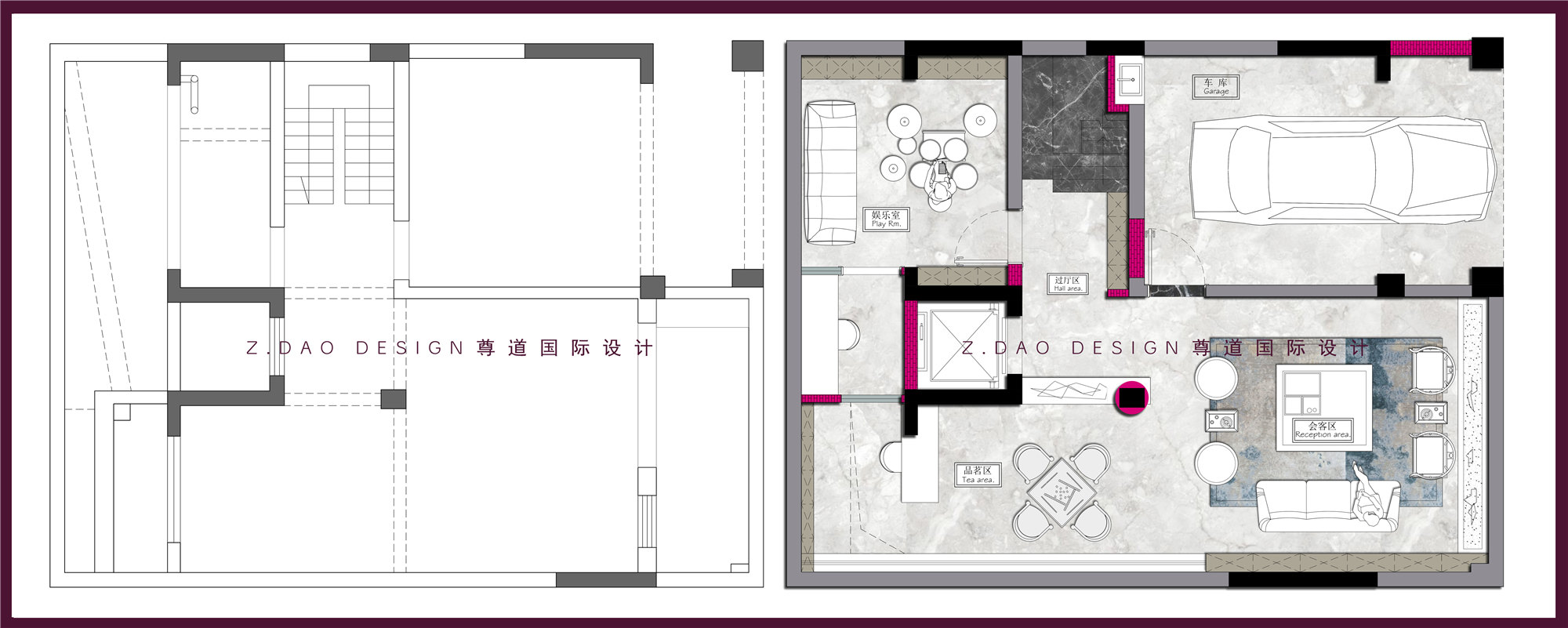 2、车库门方向调整,儿童娱乐区扩建出学习空间;