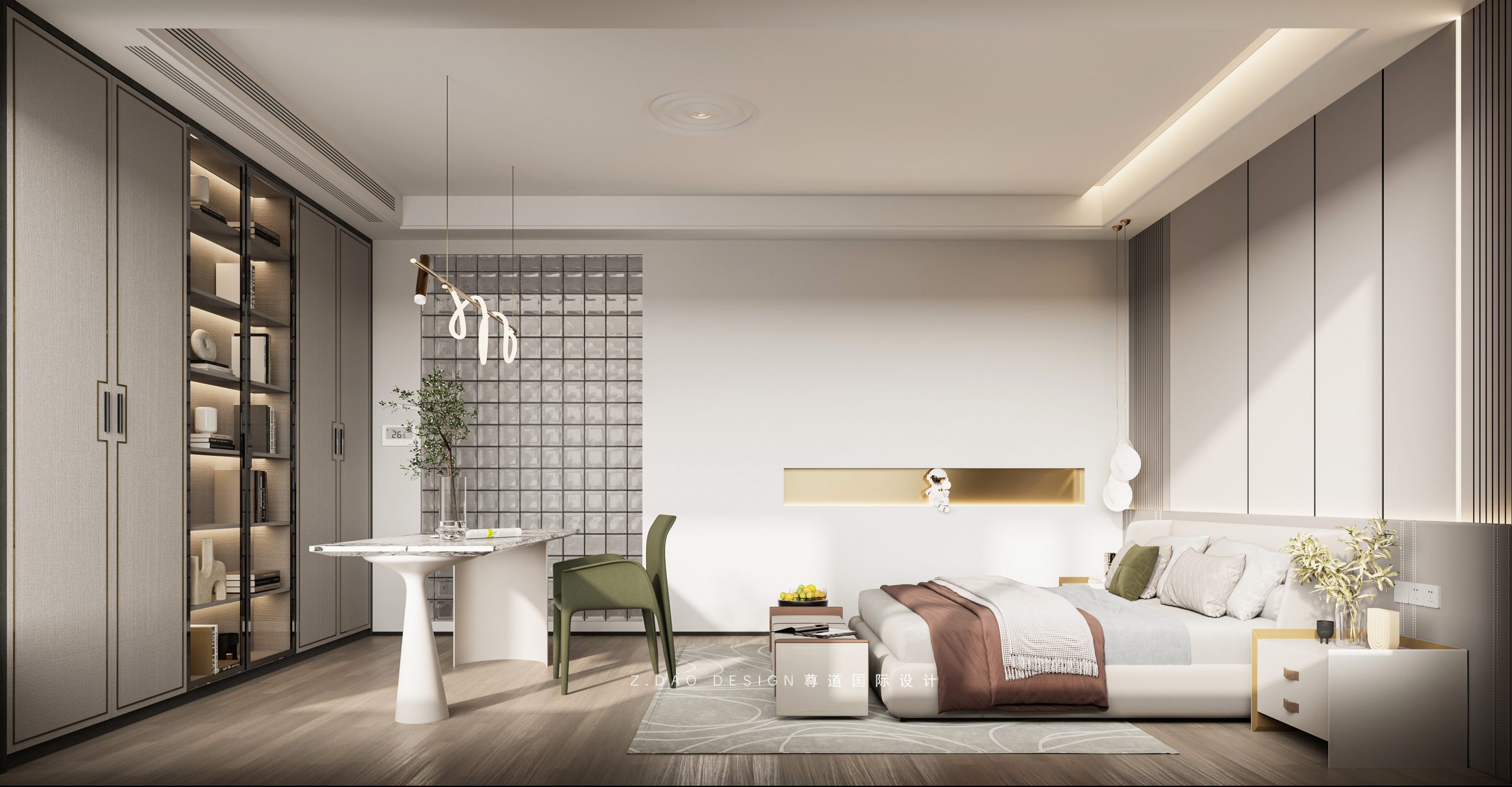 绿水之滨觅一方家园,享受“恰如其分”的安详和“不过不失” 的疏离,动静得宜,并且通过木质与金属,硬包与型材的结合,展现中式韵律的同时,衍生出当代轻奢的风韵。