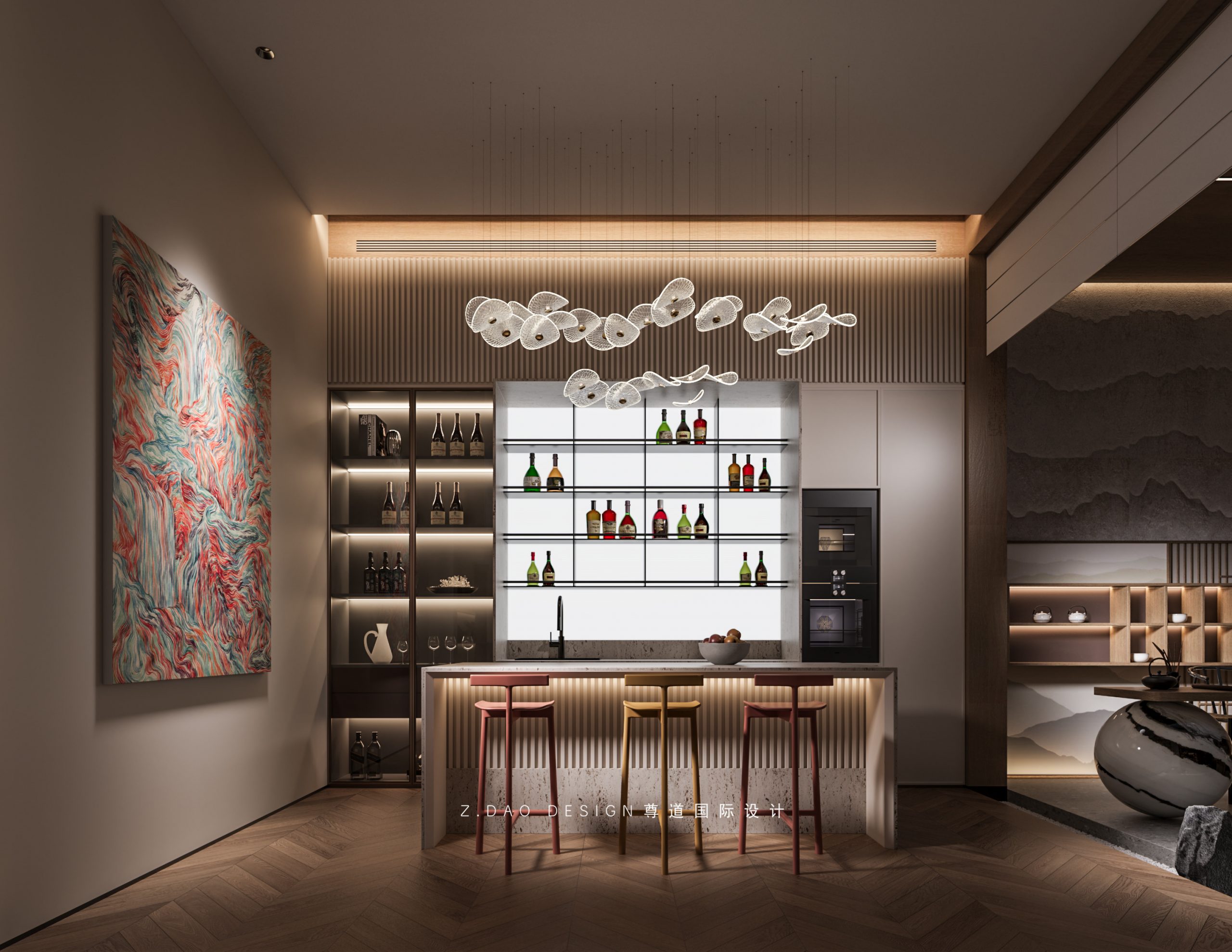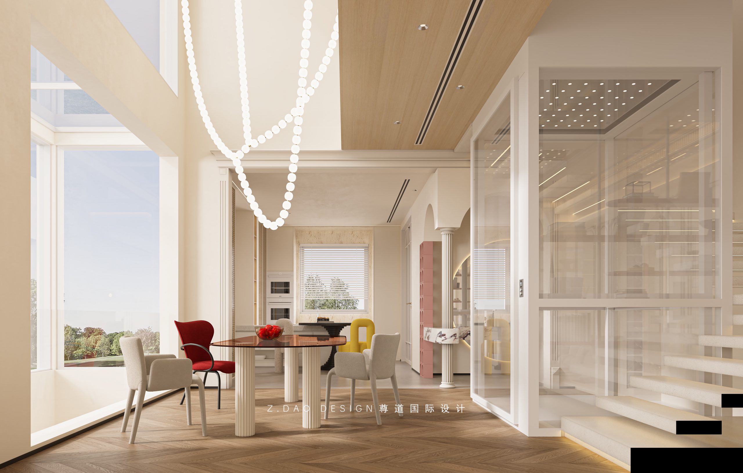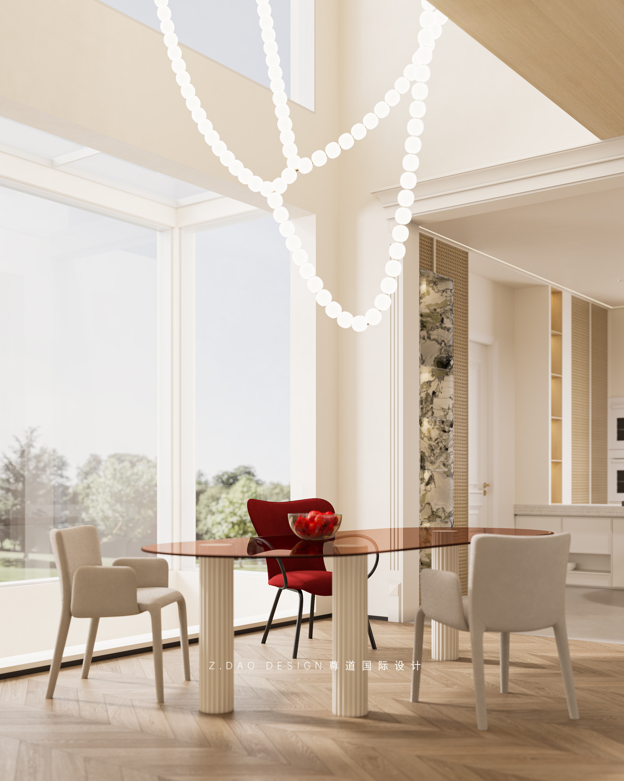 餐厅、厨房、客厅通透连贯,自然舒适的感官体验延伸,节奏舒缓。