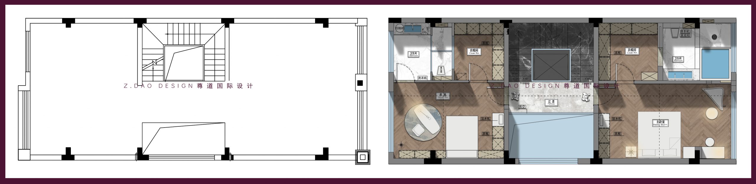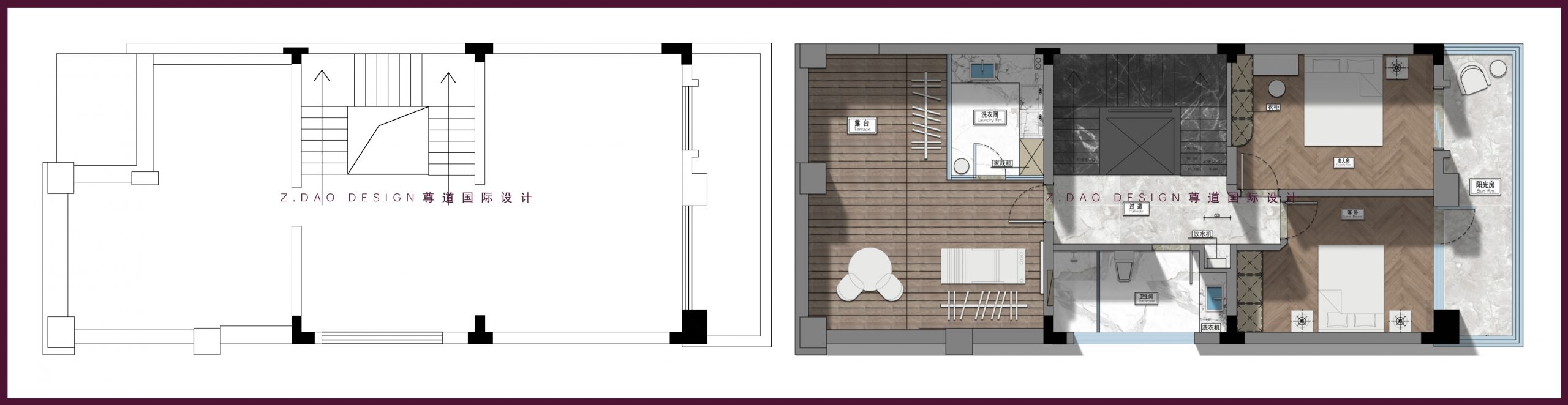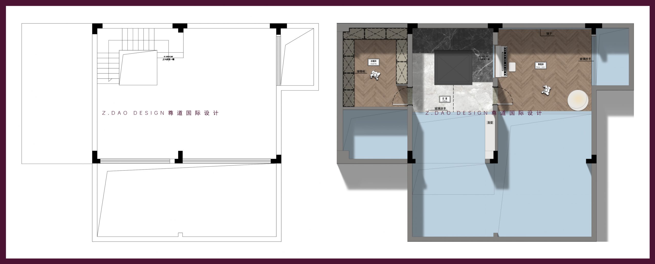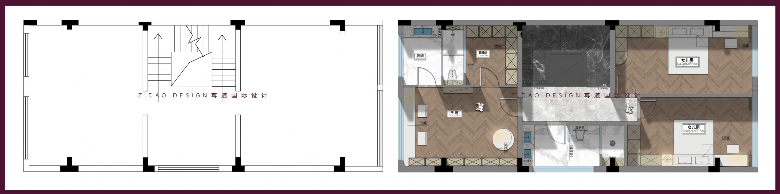 ▲二层原始户型图vs平面布局图