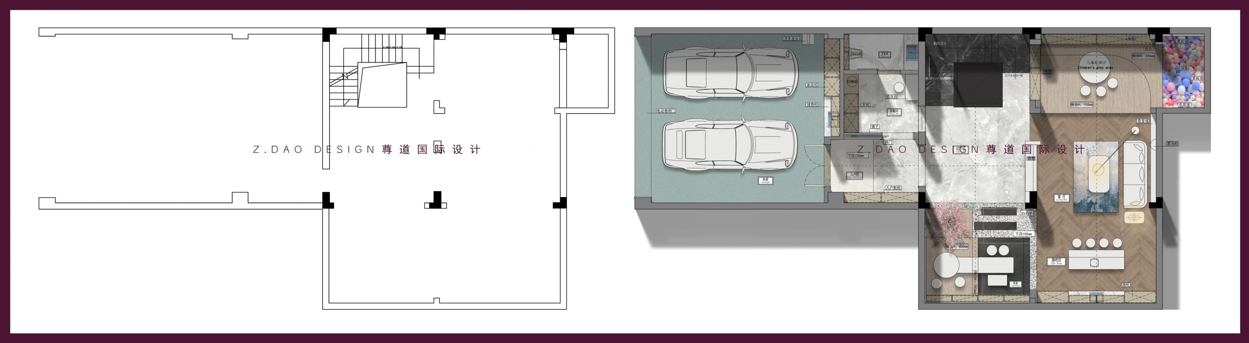 2、把原私家车库空间纳入室内使用扩大室内空间。
