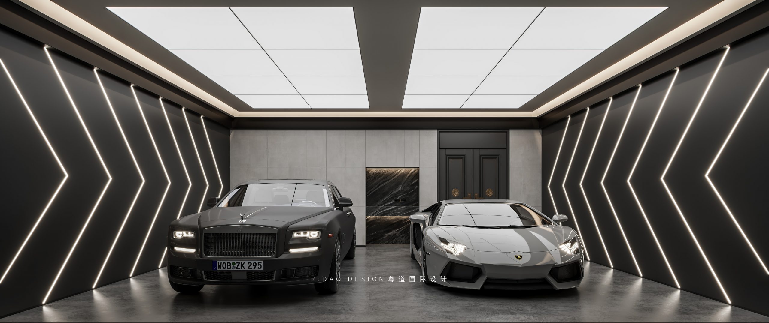 车库现在已经成为别墅的必备场所,整个车库采用智能感应灯光,打造重金属般的力量感。